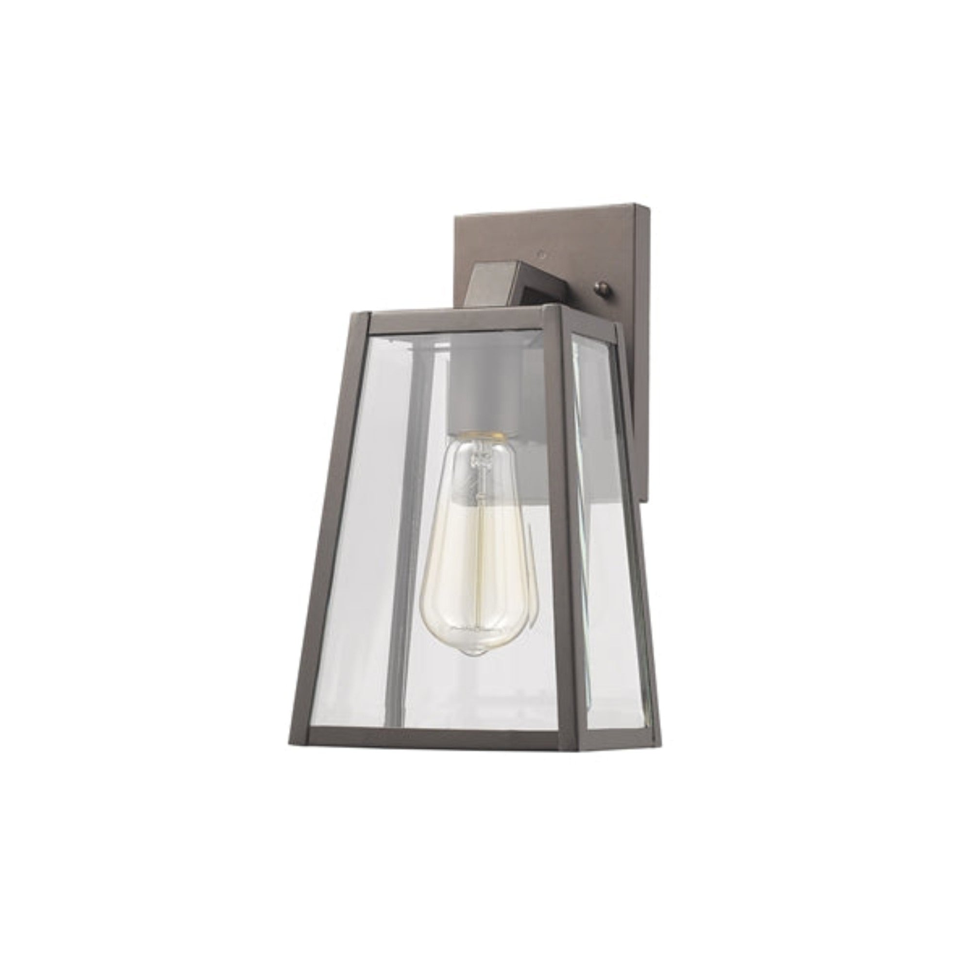 The Leodegrance outdoor wall sconce delivers timeless curb appeal with a warm, welcoming glow. Crafted from durable steel and glass with an oil rubbed bronze finish, this weatherproof fixture features a clear beveled glass trapezoid shade that diffuses light beautifully. Ideal for front porches, patios, or garage entries, it complements a wide range of traditional and transitional exteriors. One 100W bulb is included for added convenience.