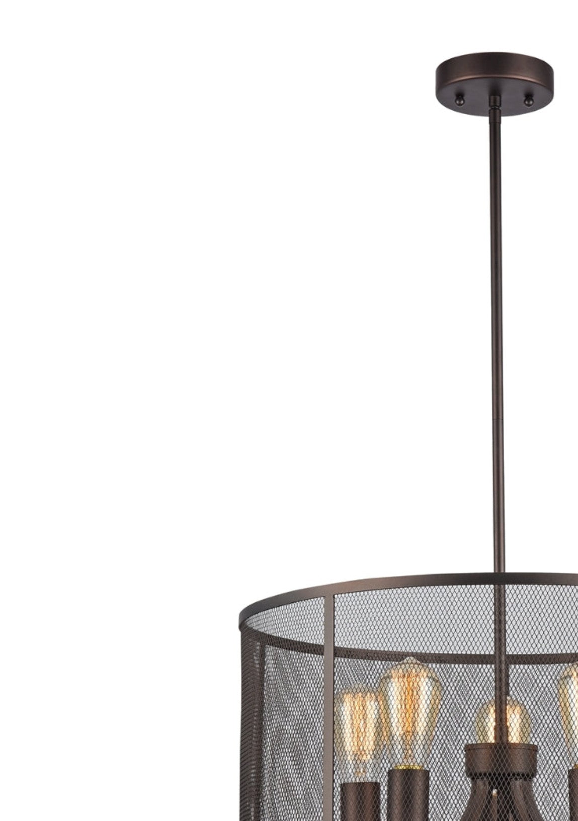 Bring bold industrial character into your home with the Lorry 5 Light Ceiling Pendant, a striking fixture that fuses rugged charm with contemporary appeal. The oil rubbed bronze finish enhances its urban-inspired cage frame, while the open mesh design surrounds a cluster of five bulbs, allowing ambient light to flow freely. Perfect for lofts, kitchens, or modern transitional interiors, this pendant makes a statement with functional elegance.