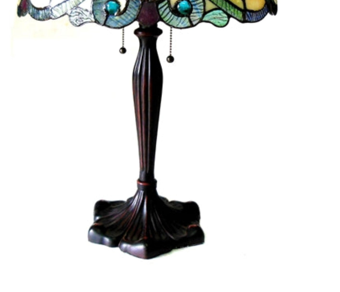 - Handcrafted shade with 330 stained glass cuts and 36 decorative beads