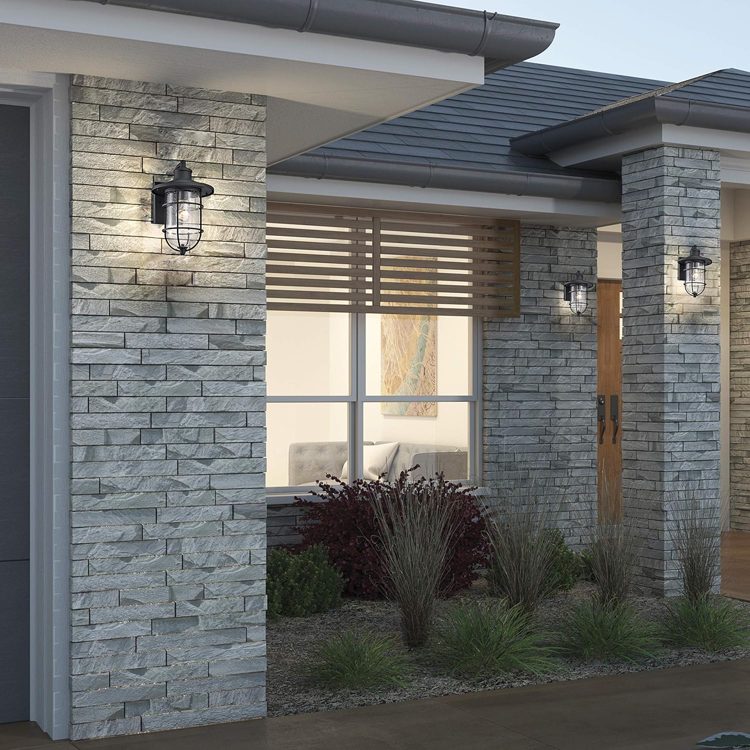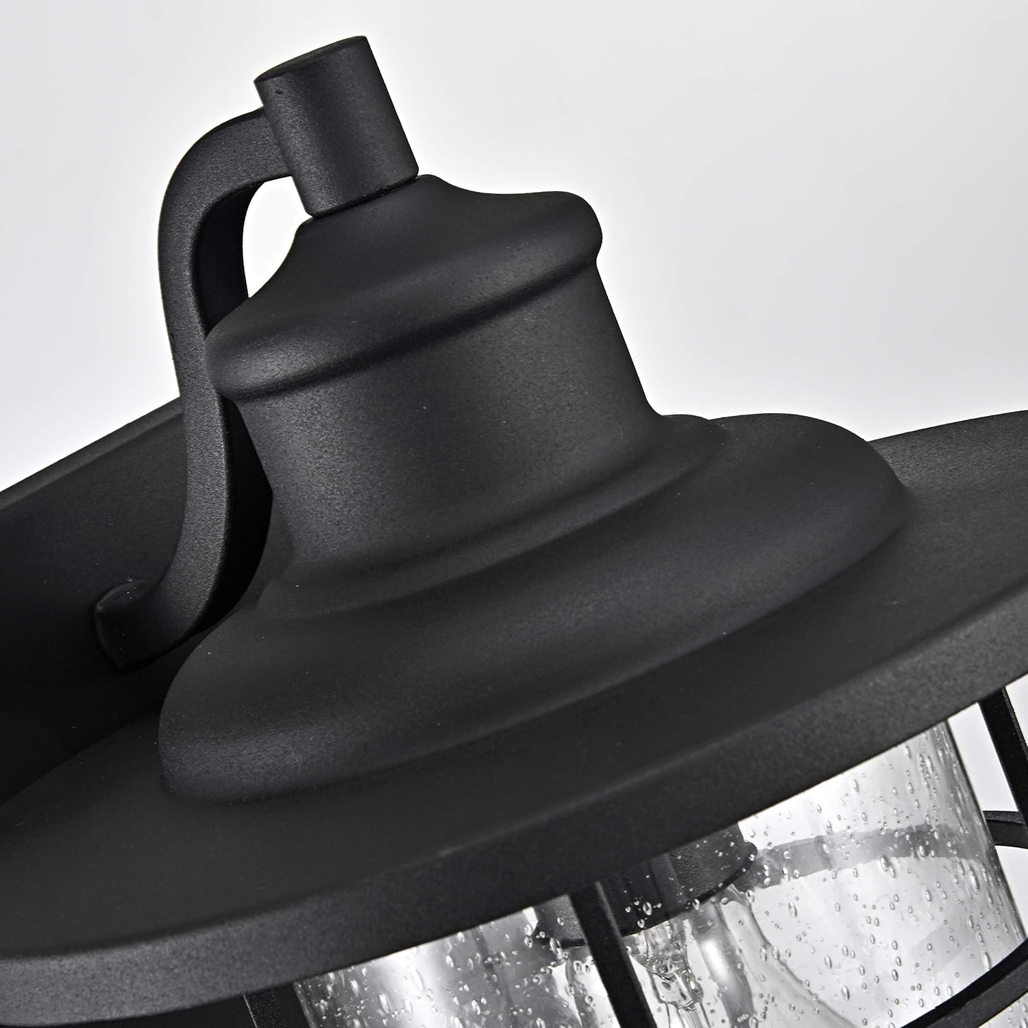 Get back to the classics with this textured black out door wall sconce! This fixture features a cylinder shaped, seedy glass globe that encapsulates the light bulb, and is surrounded by a black cage. This piece would be wonderful to accentuate your front door and garage! The fixture takes one 100W bulb and is compatible with flourescent, incandescent and LED bulbs. All of our wall sconces are UL listed, and dry, damp and wet listed, to survive all weather conditions, hot and cold.