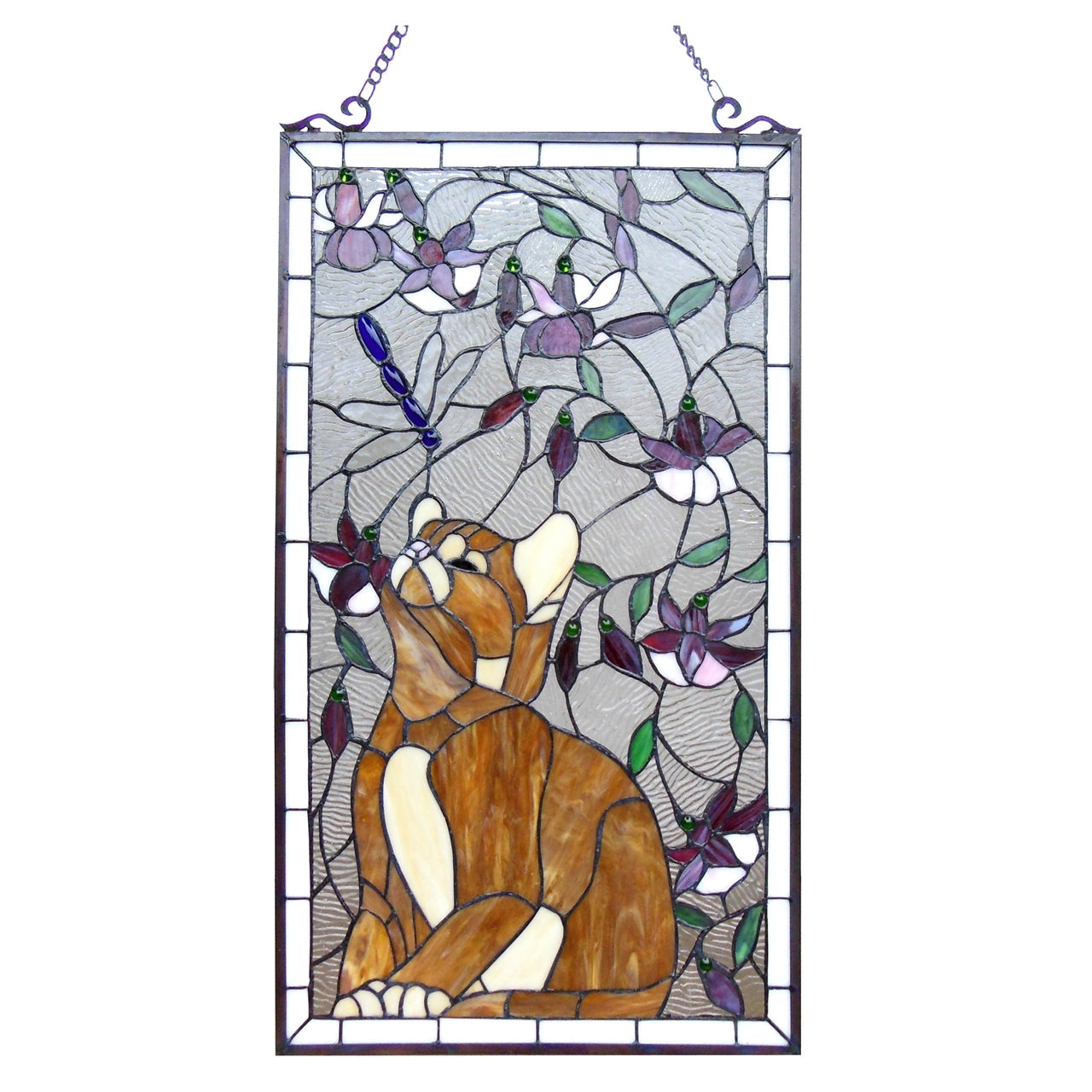 Chloe Lighting CH1P737OA31-GPN Miaou Tiffany-Glass Window Panel 18x31