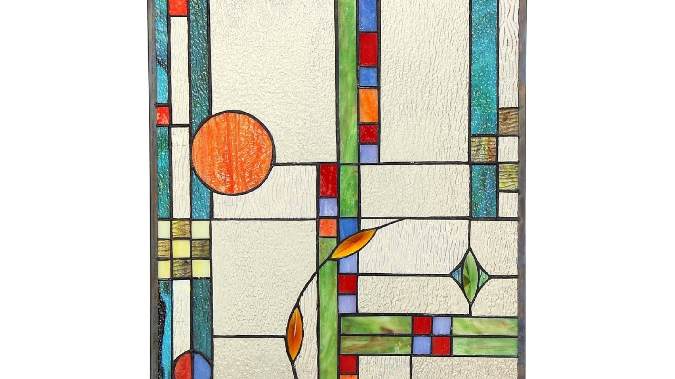 Chloe Lighting CH3P700CO24-GPN Mondriaan Tiffany-Glass Window Panel 17.5x25