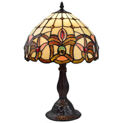 Beautifully hand-crafted table lamp with intricate designed and cut glass lamp shade. Features a mosaic of cut glass each accentuating one another. Soft hues of color exudes from this lamp. Coated in an antique bronze patina tone. Dual chain switch with metallic ball ends. Details abound from the base to the top anchor. Expertly crafted with top quality materials