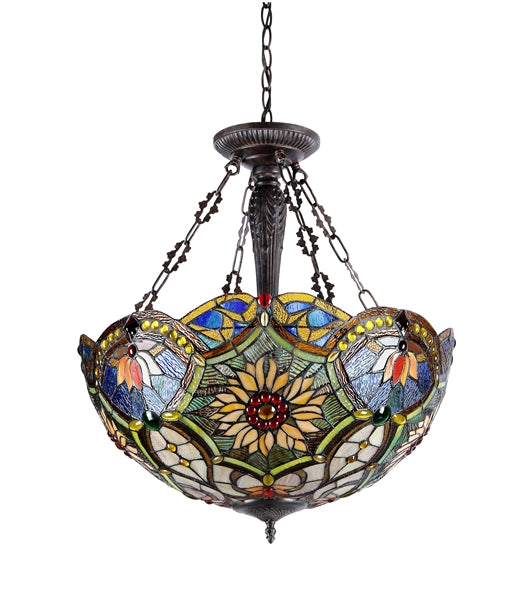Chloe Lighting CH33270VB21-UH3 Rebecca Tiffany-Style 3 Light Victorian Inverted Ceiling Pendant 21`` Shade