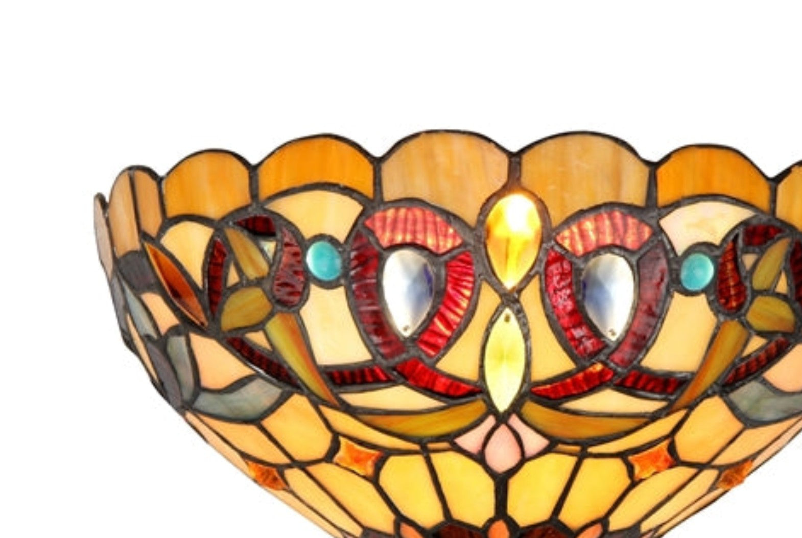 Tiffany-style wall sconce handcrafted from 131 stained-glass cuts and 2 crystal beads