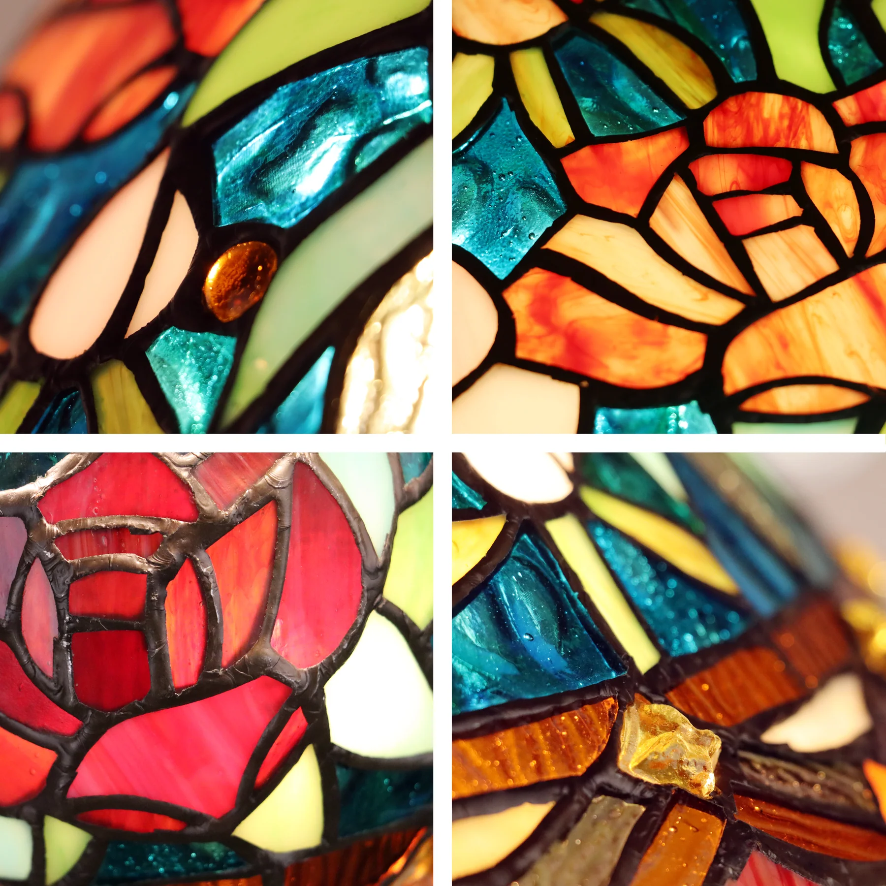 - Handcrafted from 702 pieces of copper-foiled stained glass and 60 beads