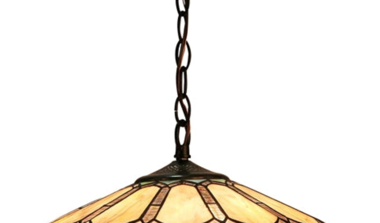 - Floral Tiffany-glass shade paired with a dark antique bronze finish