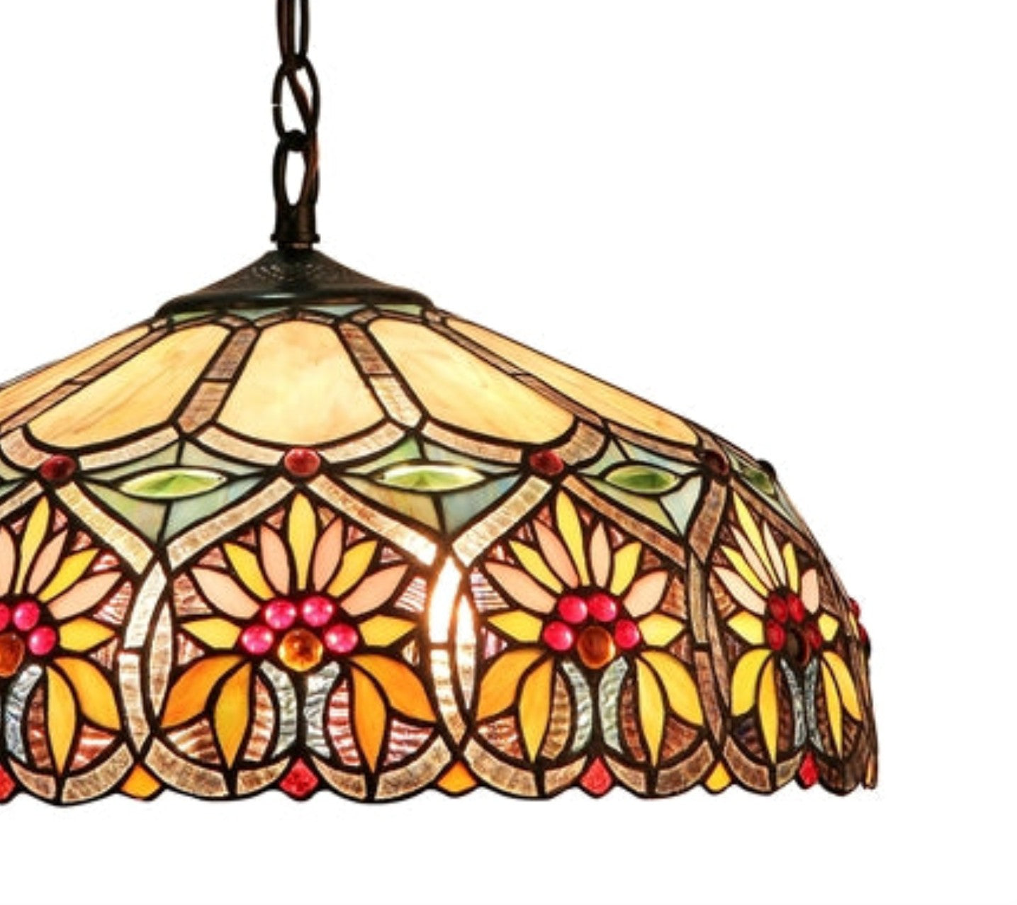 18 inch floral stained glass,antique bronze pendant lamp,cabochon floral tiffany,classic hardwired pendant light,colorful downlight ceiling lamp,handcrafted tiffany hanging light,Pendants,sunny tiffany light fixture,tiffany ceiling pendant lamp,vibrant glass ceiling light,victorian stained glass pendant