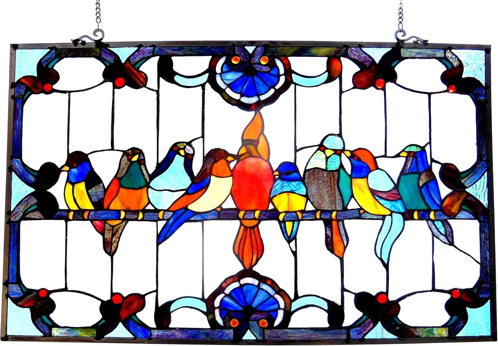 Chloe Lighting CH1P982RA32-GPN Tiffany-Glass Featuring Gathering Birds Window Panel 32x20