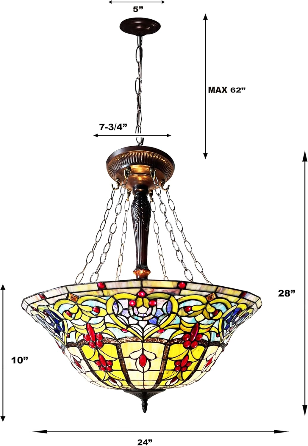 SKU - CHL-CH1A235GV24-UH3 Tiffany-style 3 Light Victorian Inverted Hanging Pendant Fixture 22`` Shade Sold By Uber Bazaar