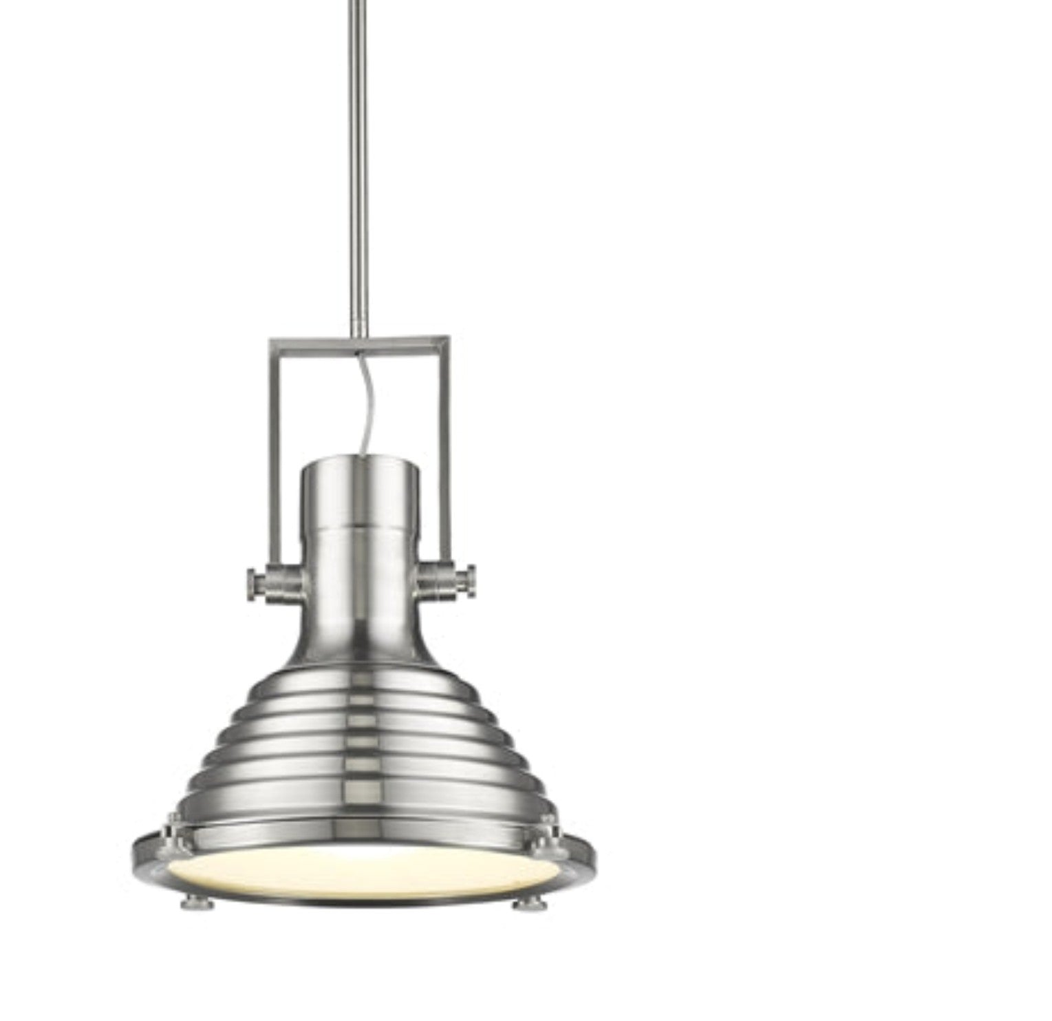 Bring a bold industrial flair to your home with the Walter 1-light ceiling pendant. The brushed nickel finish and metal dome shade evoke vintage factory lighting, while the frosted glass diffuser softens the light for a welcoming ambiance. Ideal for lofts, kitchens, or transitional interiors, this versatile fixture balances rugged character with modern elegance.
