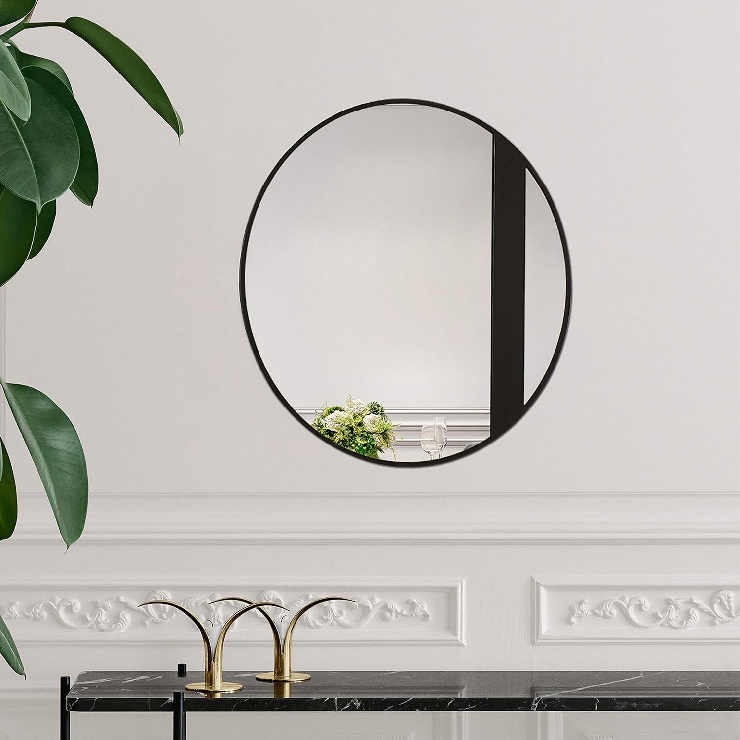 Chloe`s Reflection Black Finish Round Framed Wall Mirror 30`` Height Sold By Uber Bazaar