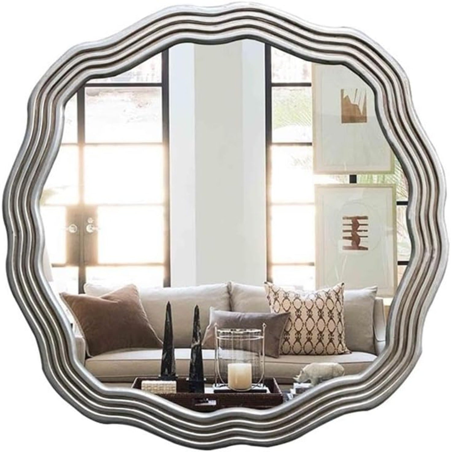 Chloe's Reflection CH8M001SP33-RND Contemporary-Style Silver Finish Round Wall Mirror 33" Wide