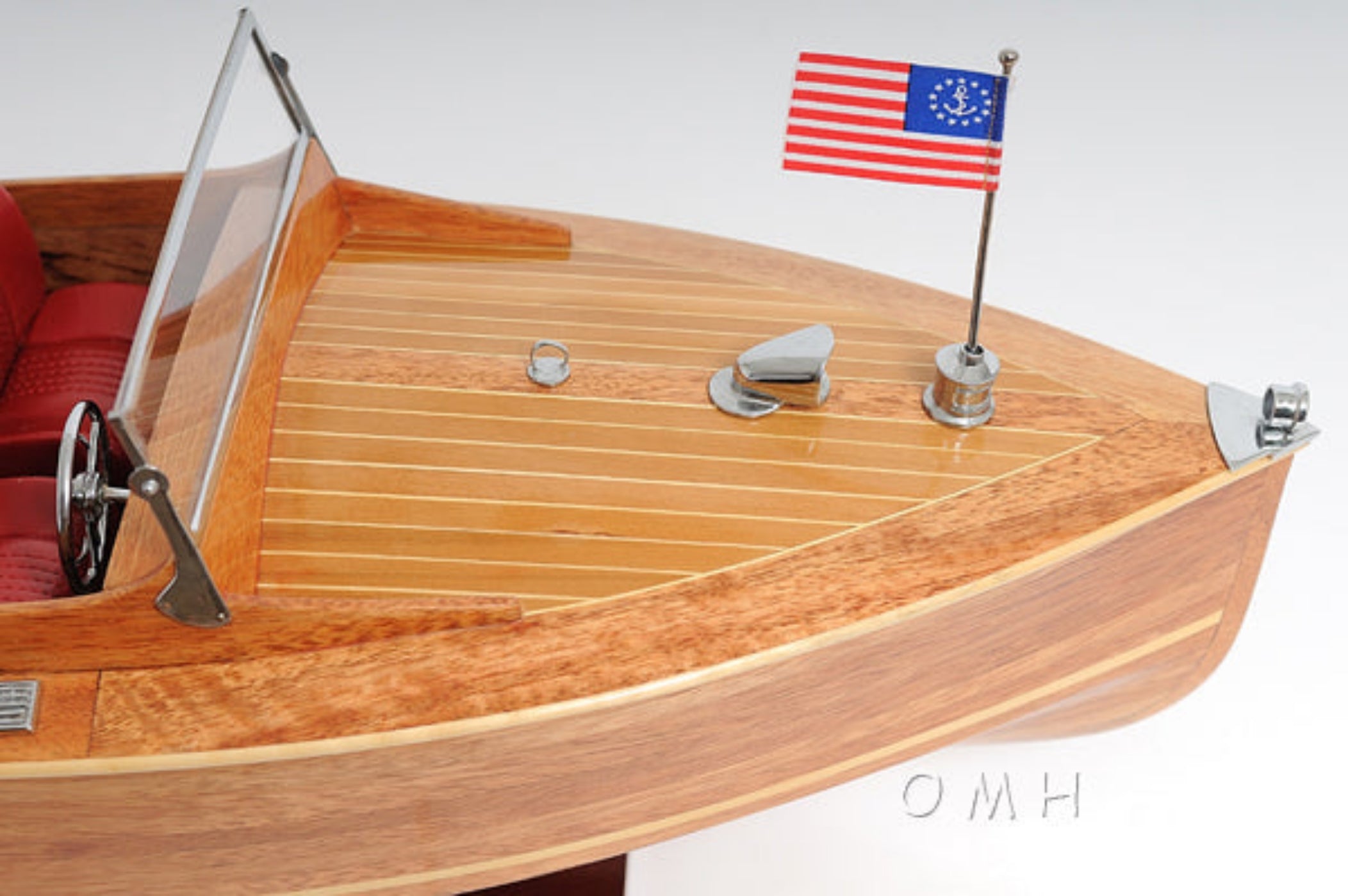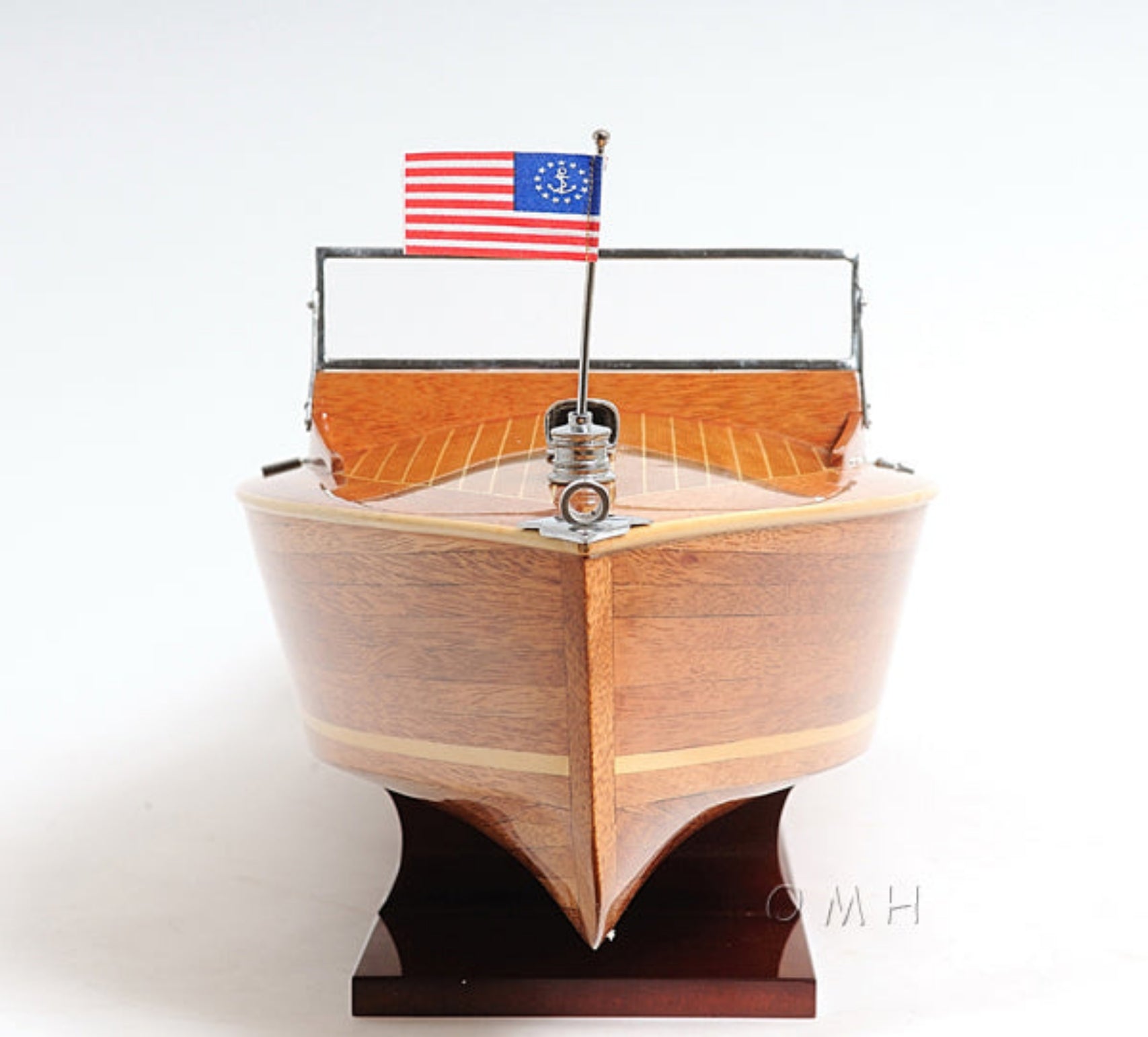 Chris Craft Runabout 9" H – Handcrafted Wooden Boat Model By Old Modern Handicrafts