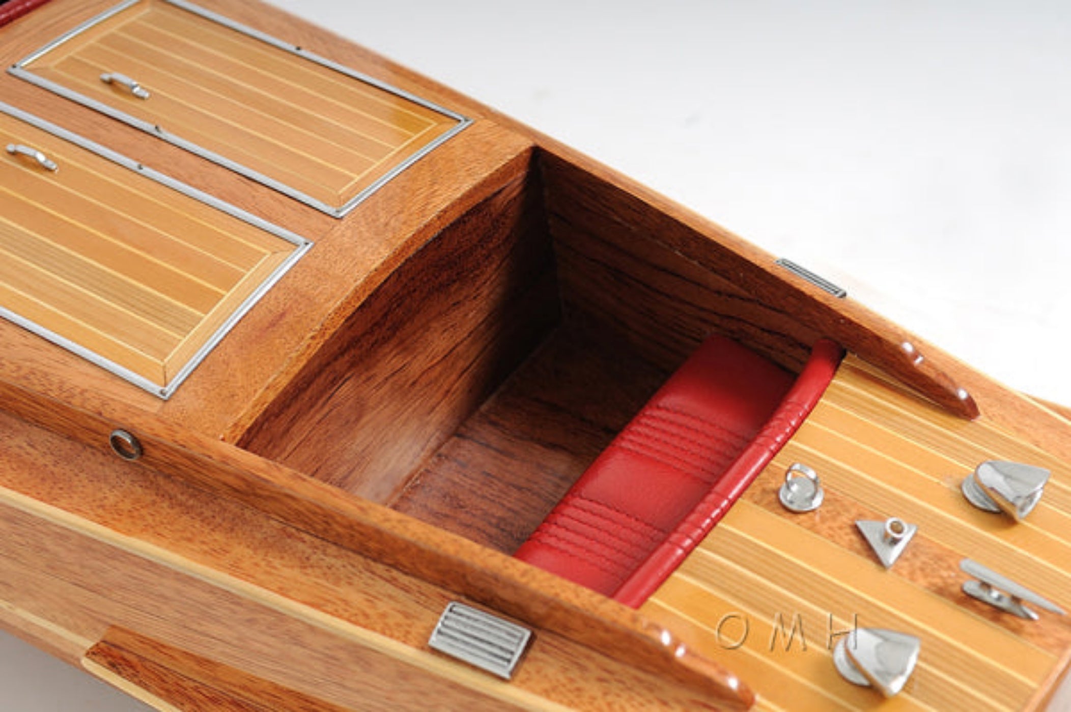 - Handcrafted mahogany and western red cedar hull