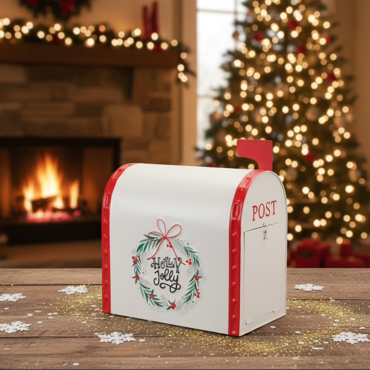 Christmas Whimsical Mailbox Decor – Holly Jolly Metal – 13" Height by Melrose