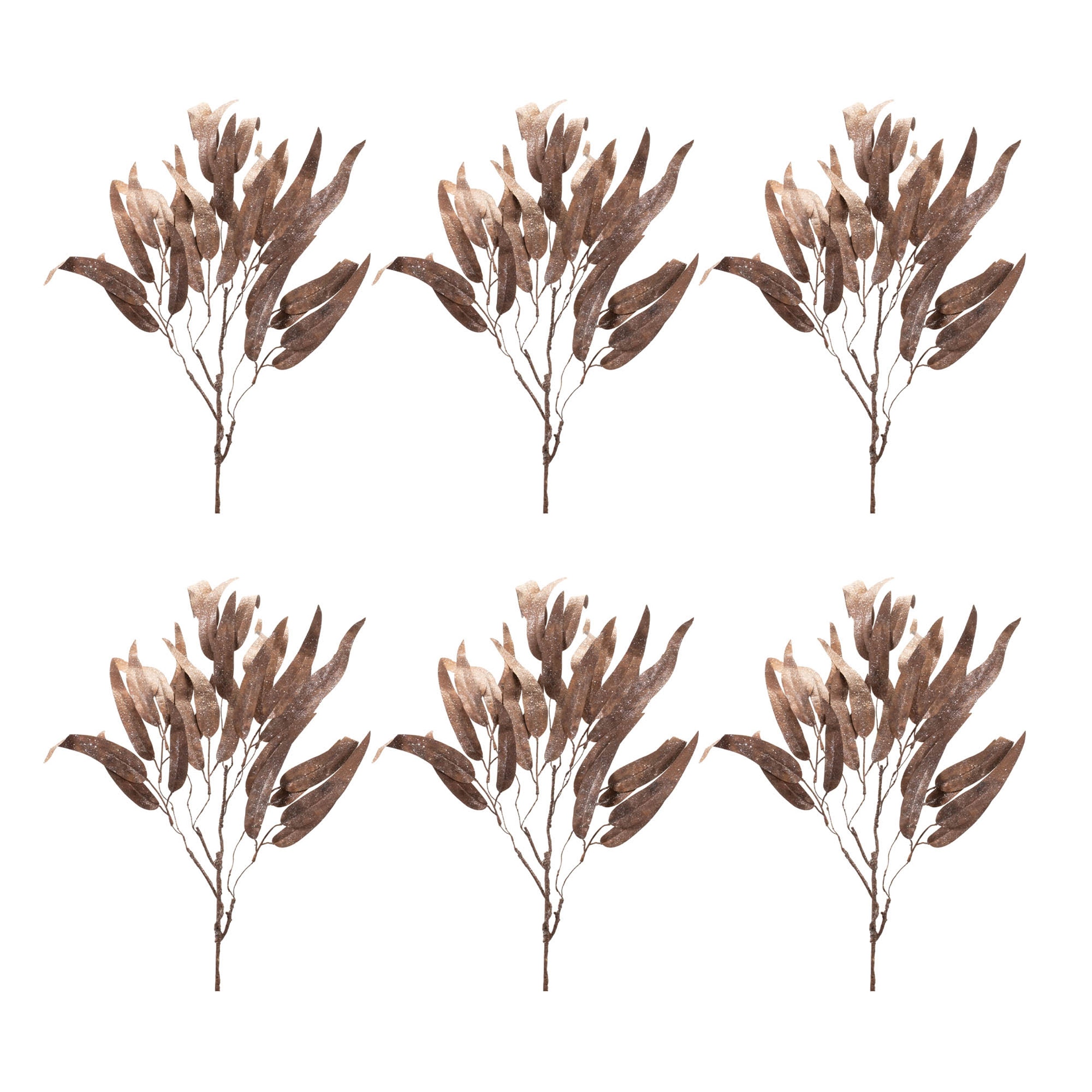 Christmas Eucalyptus Leaf Spray Set of 6 Glittered Brown Floral Stems 31" H by Melrose