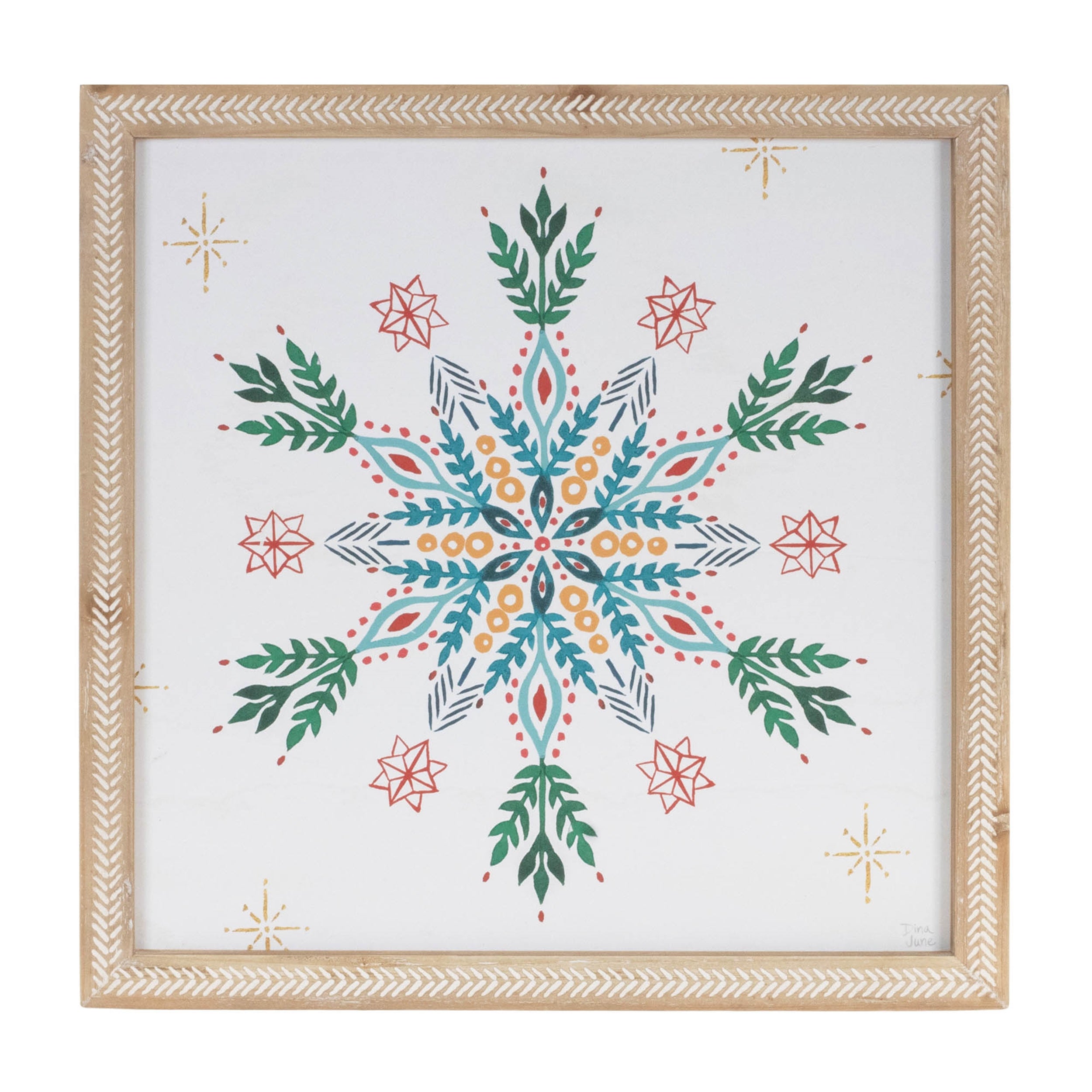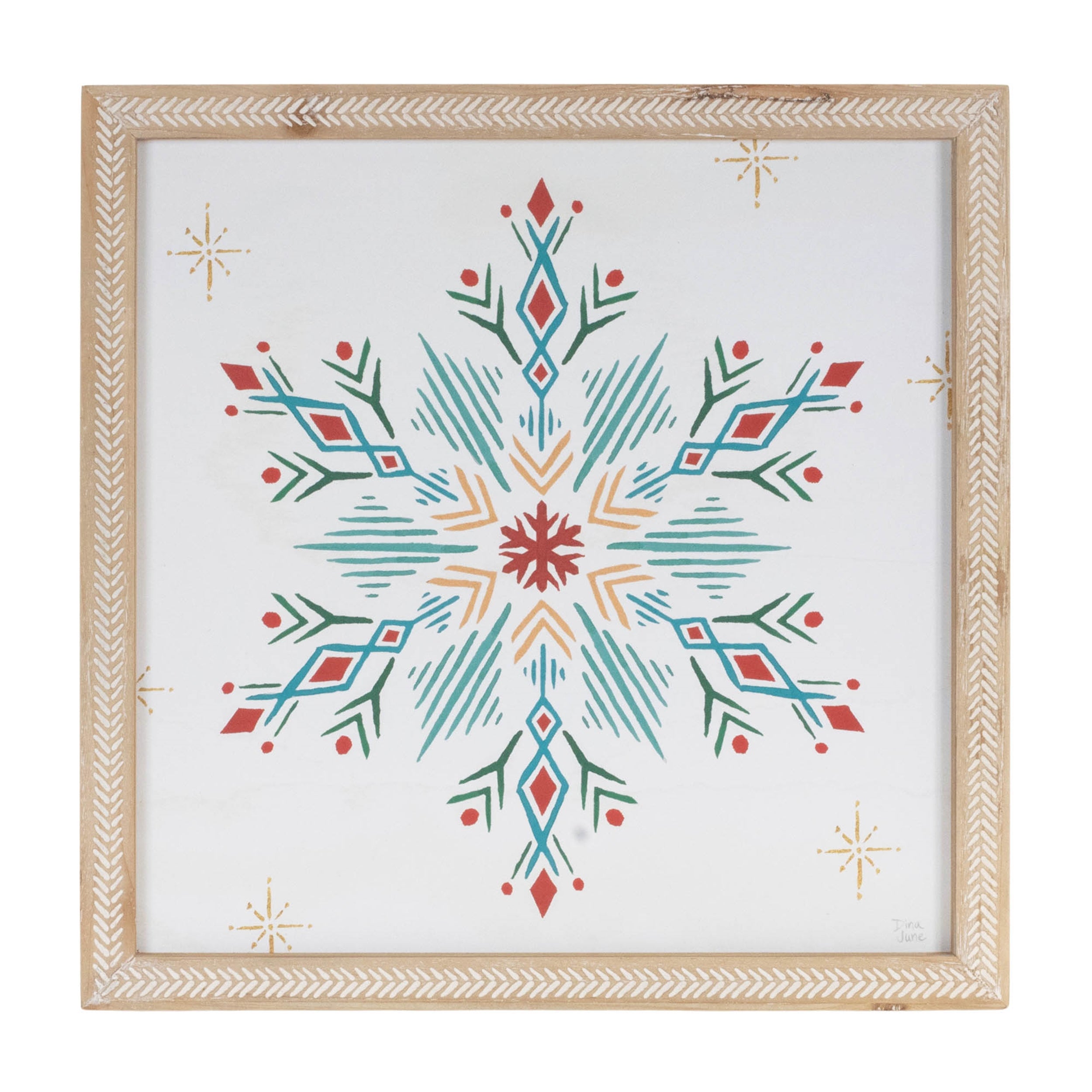 Bring a fresh, festive touch to your walls with this Set of 2 Snowflake Prints. Each piece showcases a bold, graphic snowflake design in iridescent tones, perfectly capturing the holiday spirit. Crafted from durable MDF and framed with a natural-toned frame featuring a subtle herringbone pattern, these prints combine modern style with classic Christmas charm. Ideal for entryways, living rooms, or above a mantel, they create a warm and inviting holiday atmosphere. Lightweight yet sturdy, these prints are easy to hang and versatile enough to complement any decor. Sold in a set of two pieces to create a cohesive and balanced display for your seasonal wall decor.