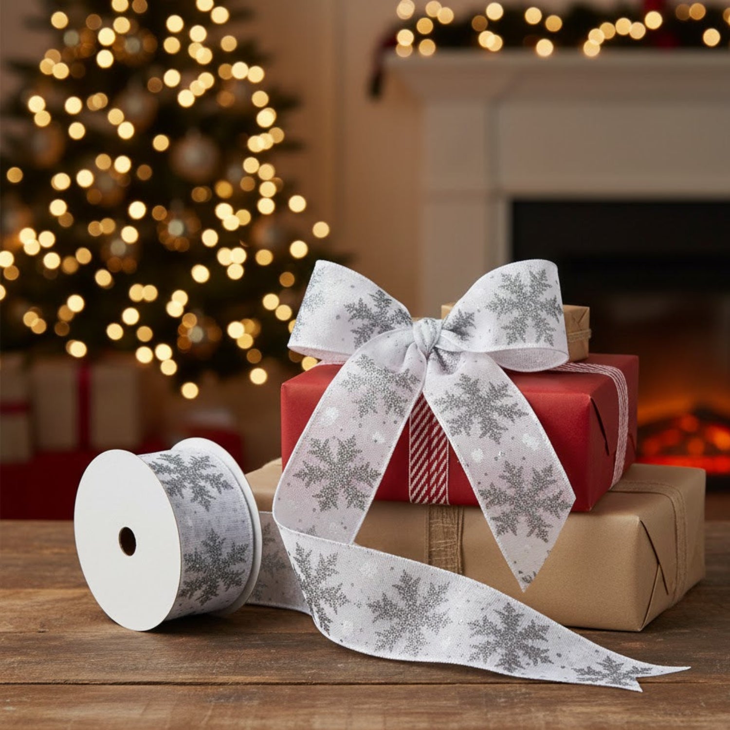 christmas gift ribbon,christmas home decor ribbon,christmas ribbon set,christmas wreath ribbon,DIY christmas ribbon,festive snowflake ribbon,grey white glitter ribbon,grey white holiday ribbon,holiday crafting ribbon,holiday decorating ribbon,seasonal crafting ribbon,tree garland ribbon,wired christmas ribbon,wired glitter snowflake ribbon,wired polyester ribbon