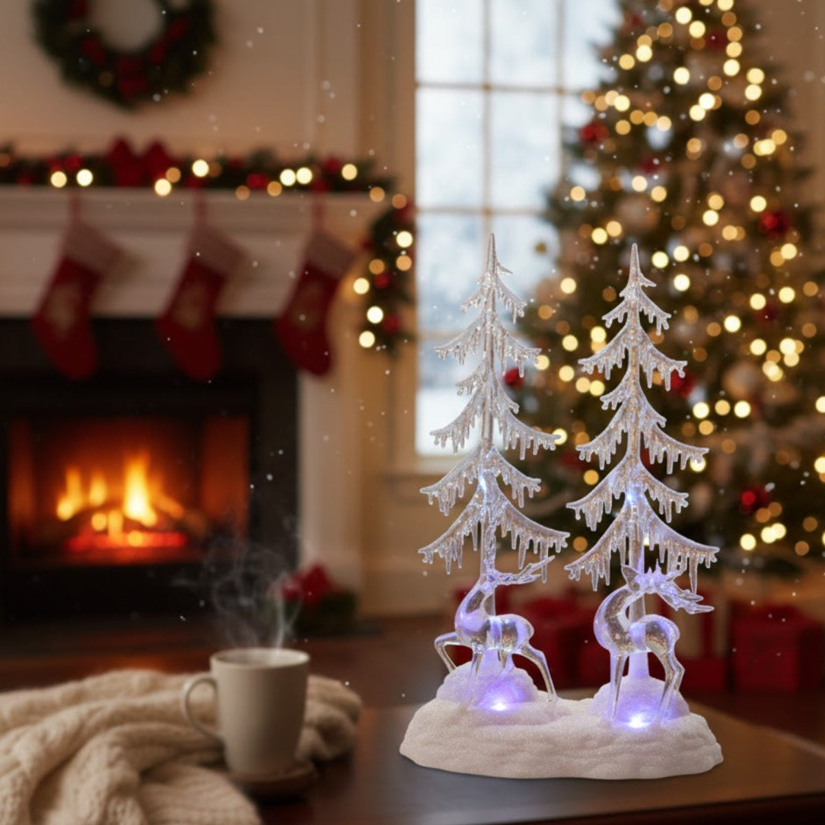 Christmas LED Display Plastic Deer and Trees 15.25" Height Holiday Accent by Melrose