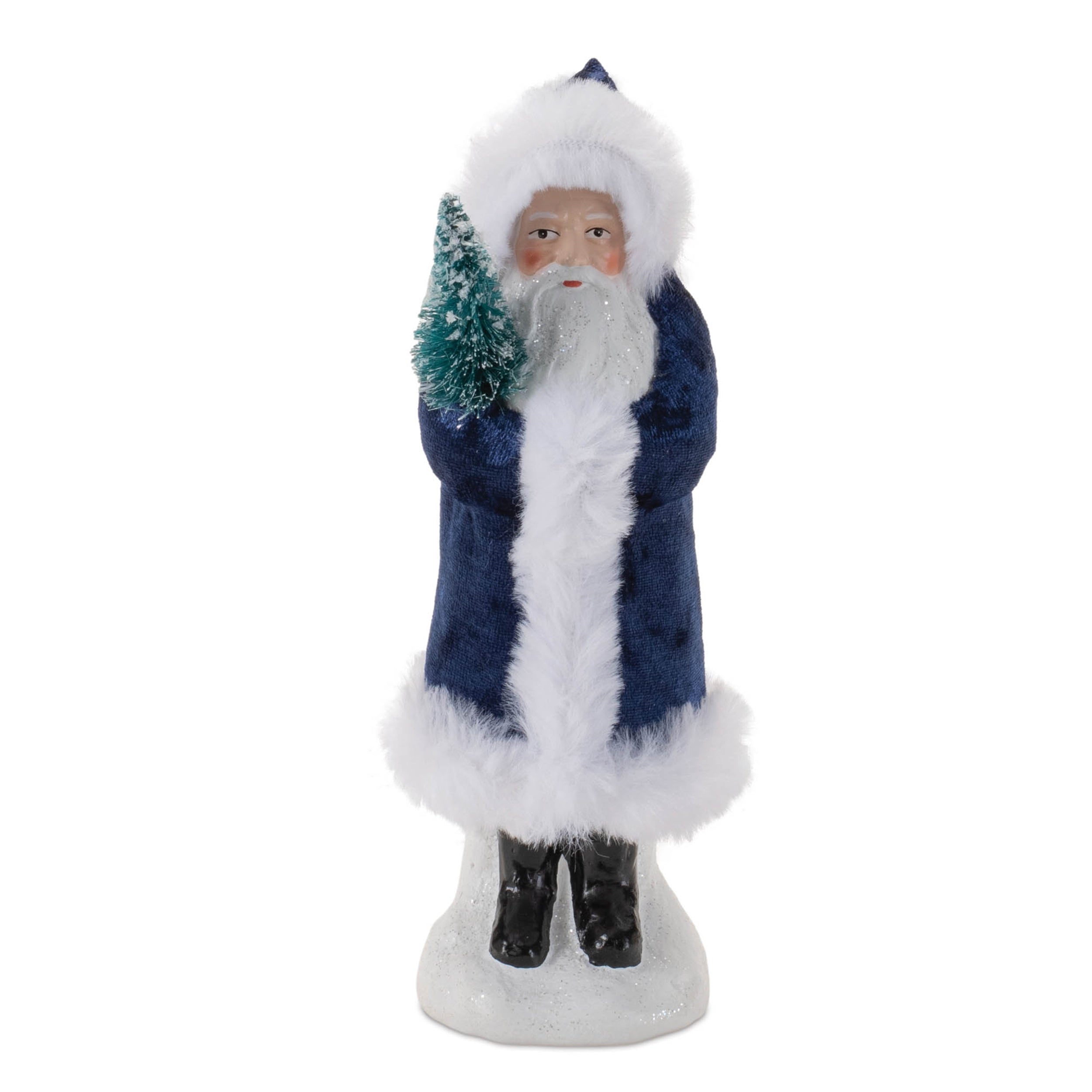 Christmas Santa Figurine Set of 2 Blue Outfit Paper Pulp 8" H Tabletop Decor by Melrose
