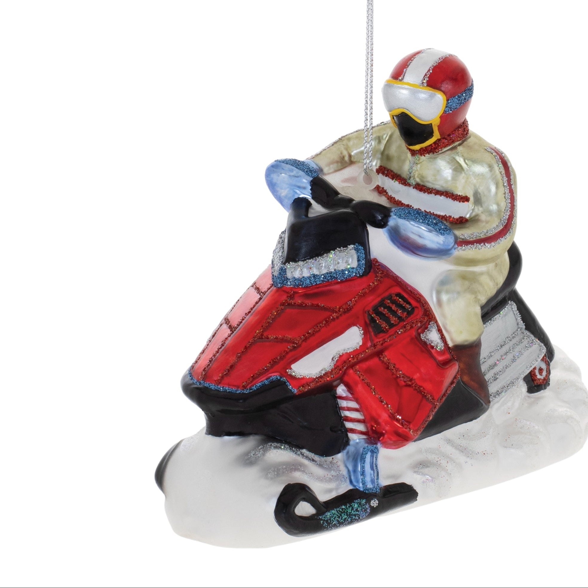 - Glass construction with detailed painted snowmobile design