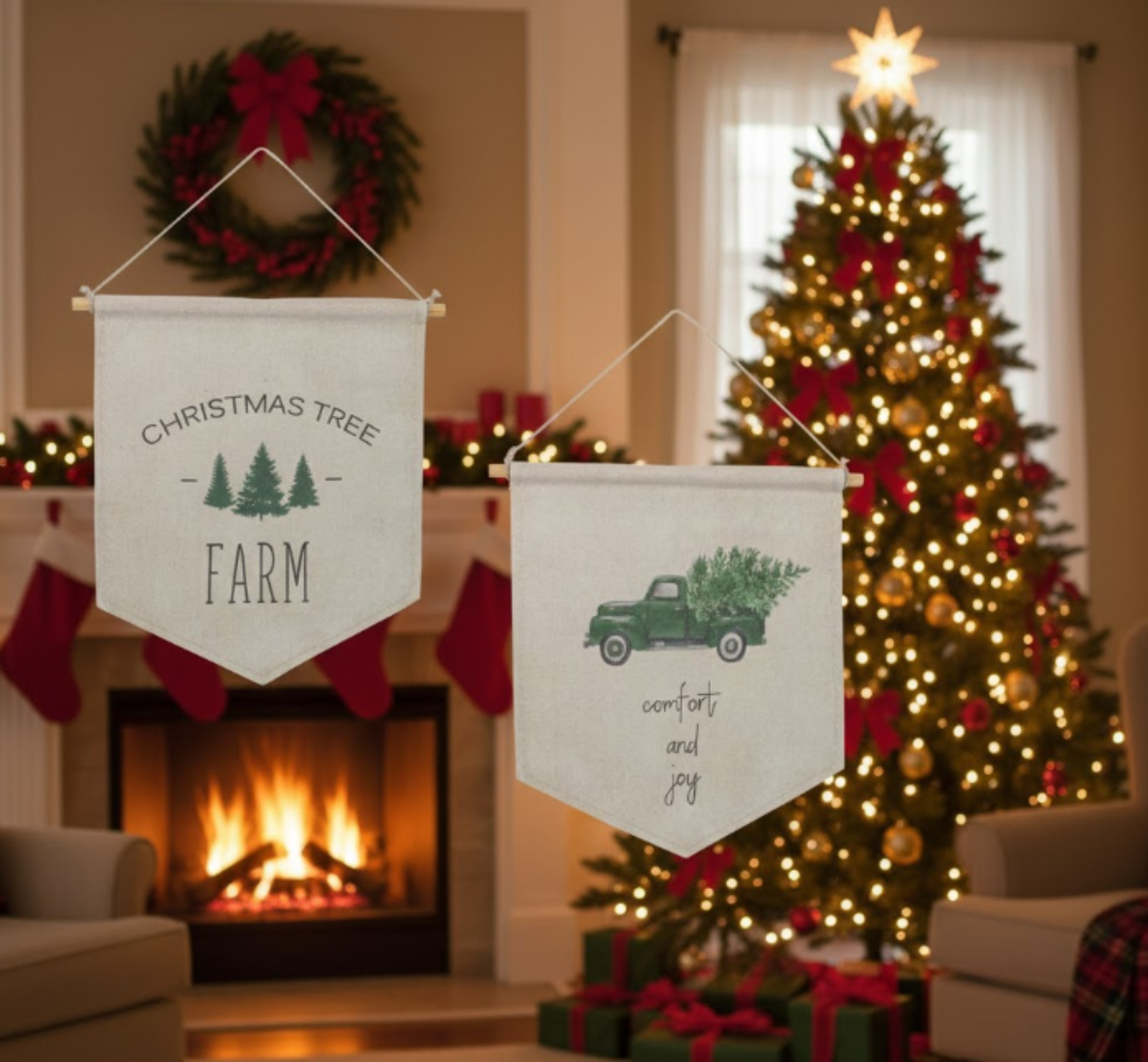 - Set of two coordinating banners for cohesive holiday decor