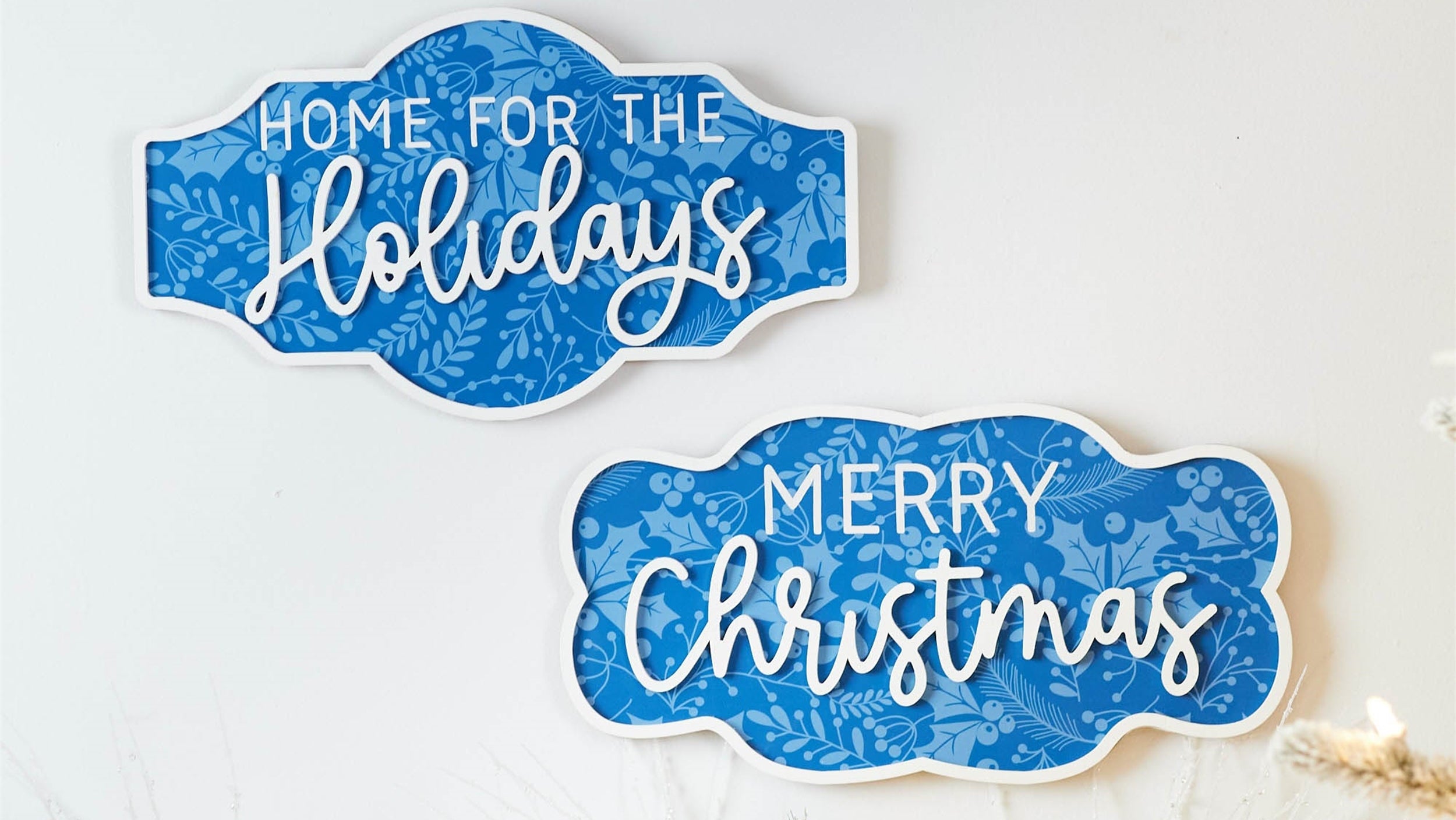 Bring warmth and festive charm to your home with this Christmas Sentiment Wall Sign Set. Crafted from durable MDF wood with paper print, these decorative wall signs feature soft blue and white tones with elegant cursive holiday messages. The set includes two coordinating designs and measures approximately 18" L x 9.5" H and 18.25" L x 10.25" H. Perfect for indoor wall displays, these lightweight signs add a welcoming seasonal touch to entryways, kitchens, and living spaces.