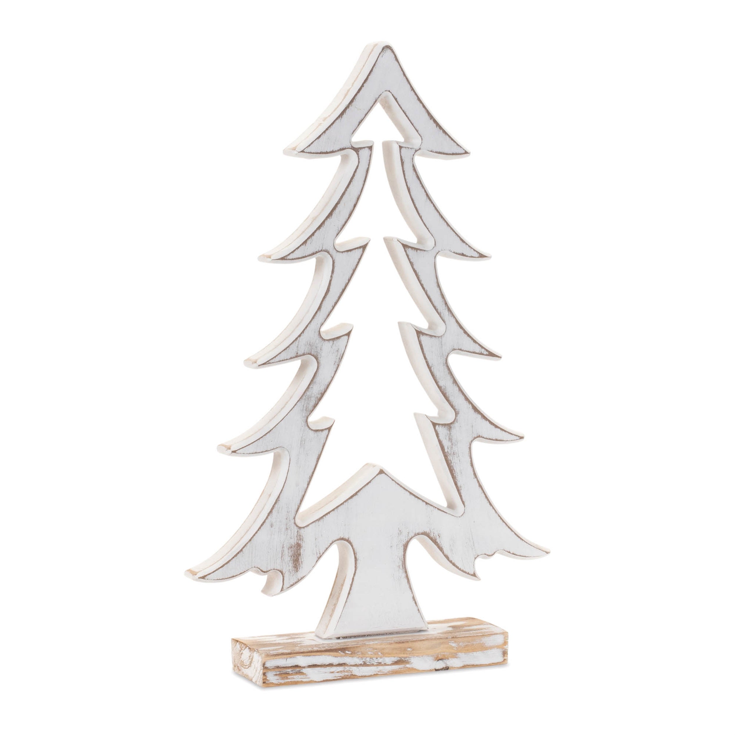 Christmas Wood Tree Cutout Set of 3 White Washed Tabletop Decor 18" Tall by Melrose