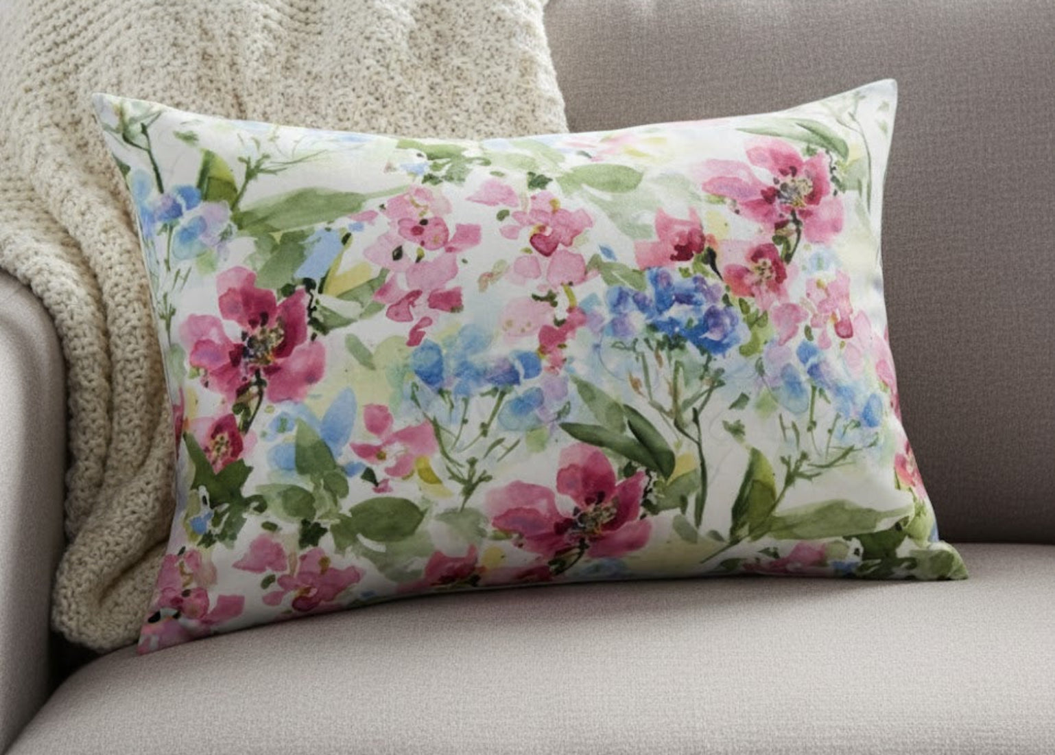 SKU - MWWSHWBBClimaweave Pillow -18x13 Inch Style Watercolor Birds & Butterflies by Manual Woodworkers