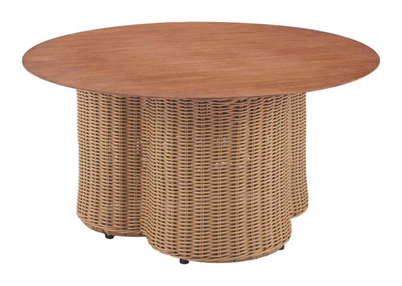 Coffee Table 16.5"H, Natural Finish, Faux Wood Metal, Modern Urban Round Design by Zuo Modern