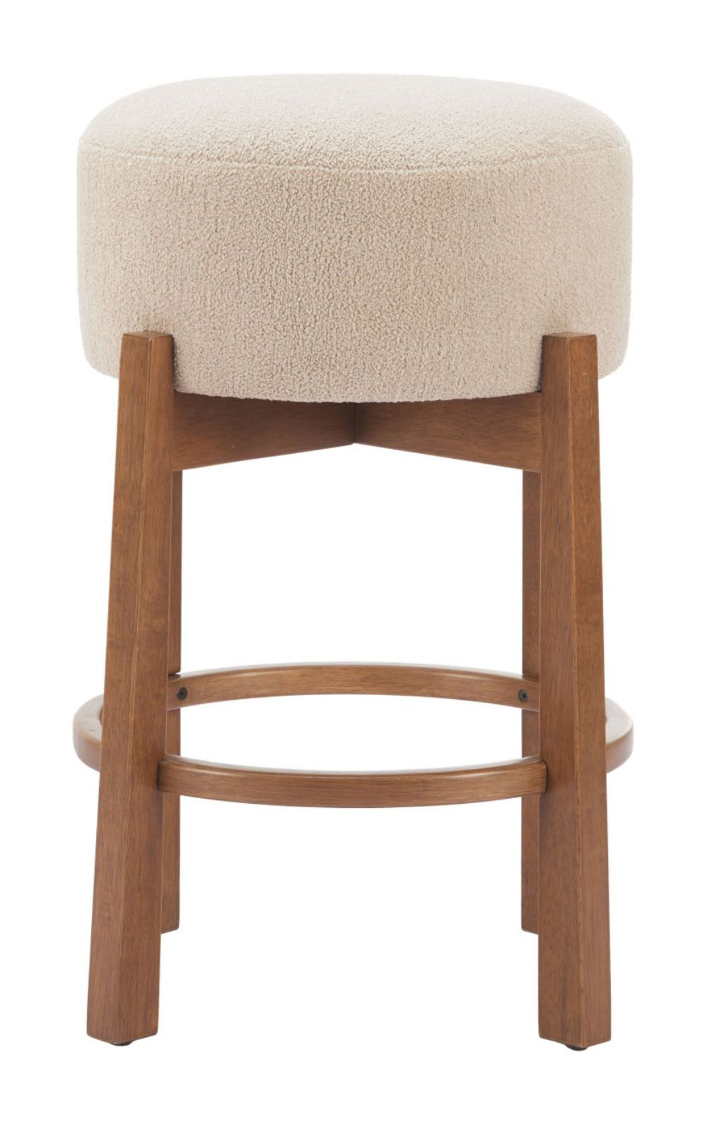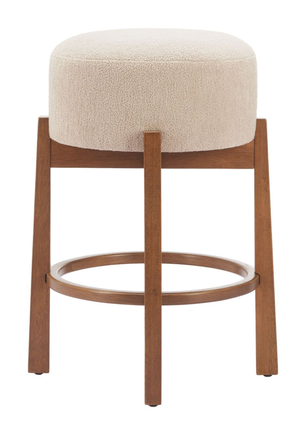 Counter Stool 26.4" H, Beige Textured Fabric & Walnut Rubberwood, Modern Design (Set of 2) By Zuo Modern
