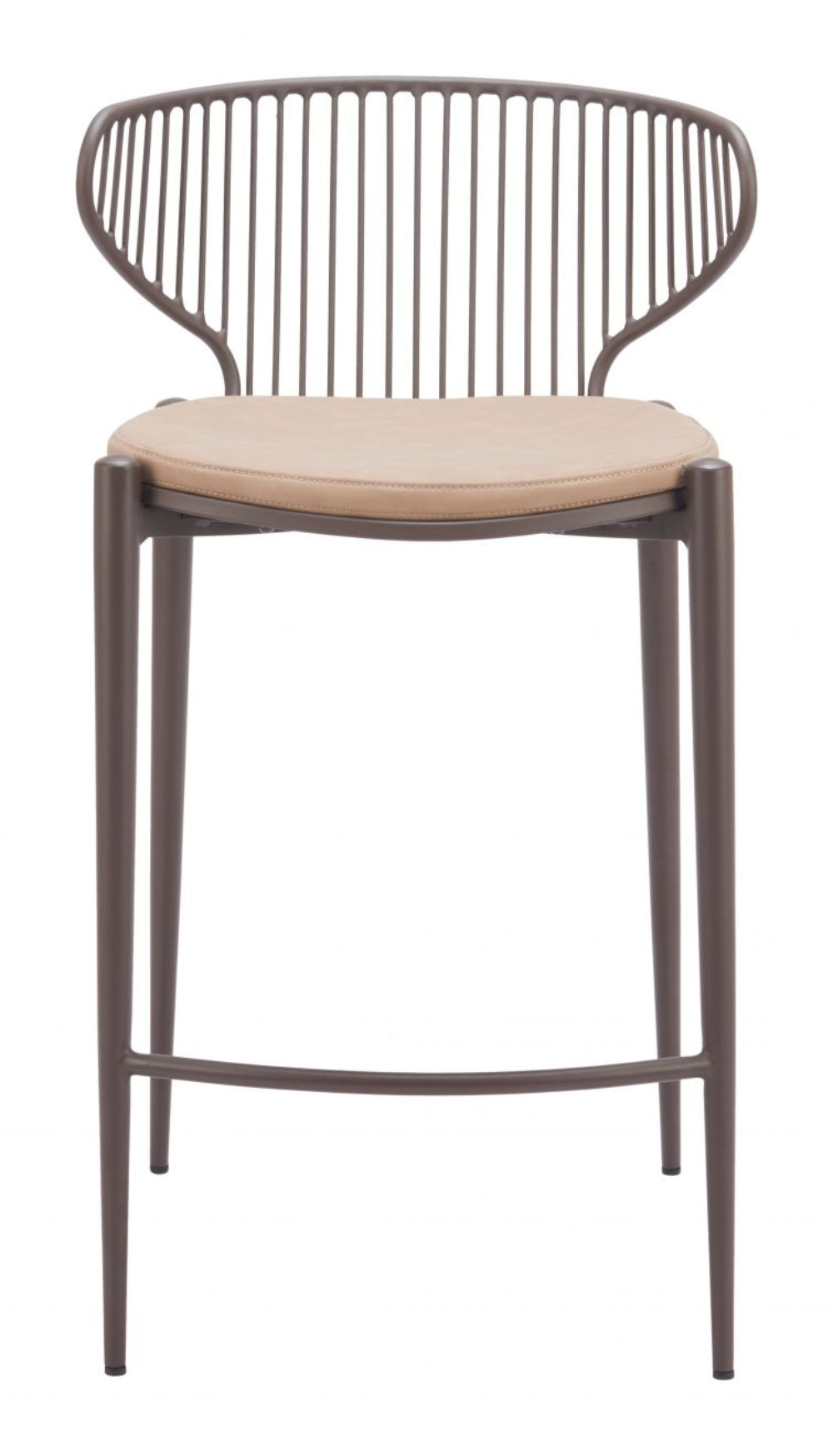 Counter Stool 34.1"H, Faux Leather with Steel Frame, Taupe & Brown Finish (Set of 2) By Zuo Modern