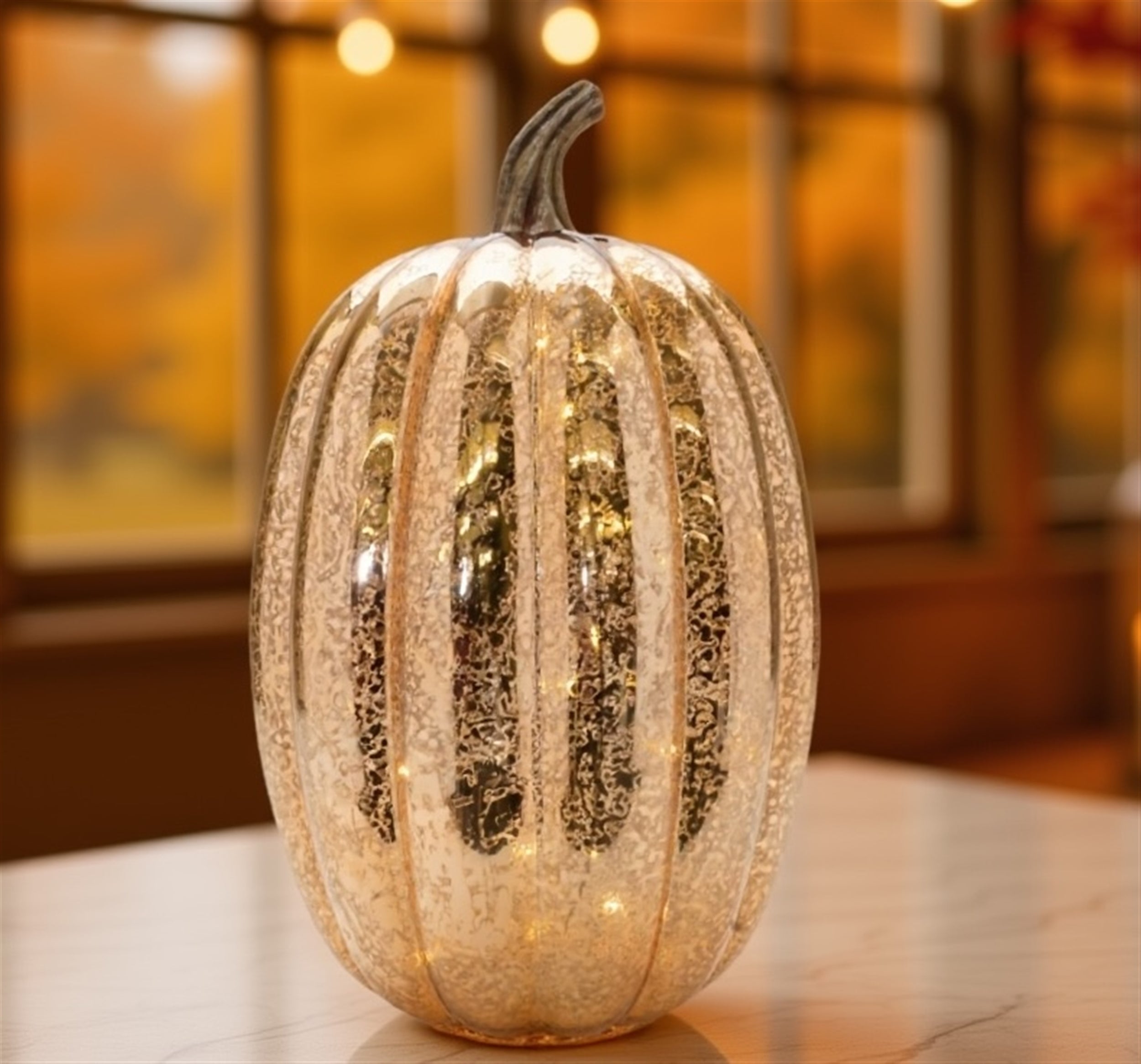 - Mercury glass finish complements both modern and traditional fall decor.
