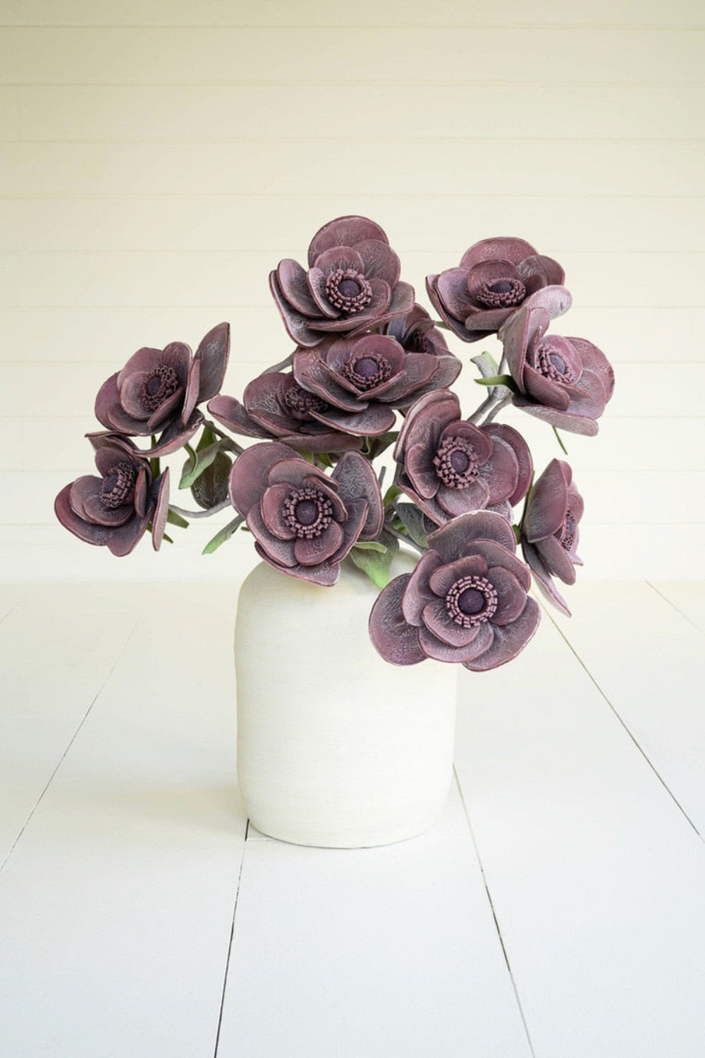 Bring dramatic elegance to your arrangements with the Botanica #2665 dark purple floral stems by Kalalou. Each 34-inch stem showcases open faux blossoms in a deep, natural hue—perfect for creating moody centerpieces or adding dimension to colorful floral mixes. These lifelike blooms look striking in a wooden vase or grouped together in a rustic bowl, offering the beauty of natural flowers without the upkeep.