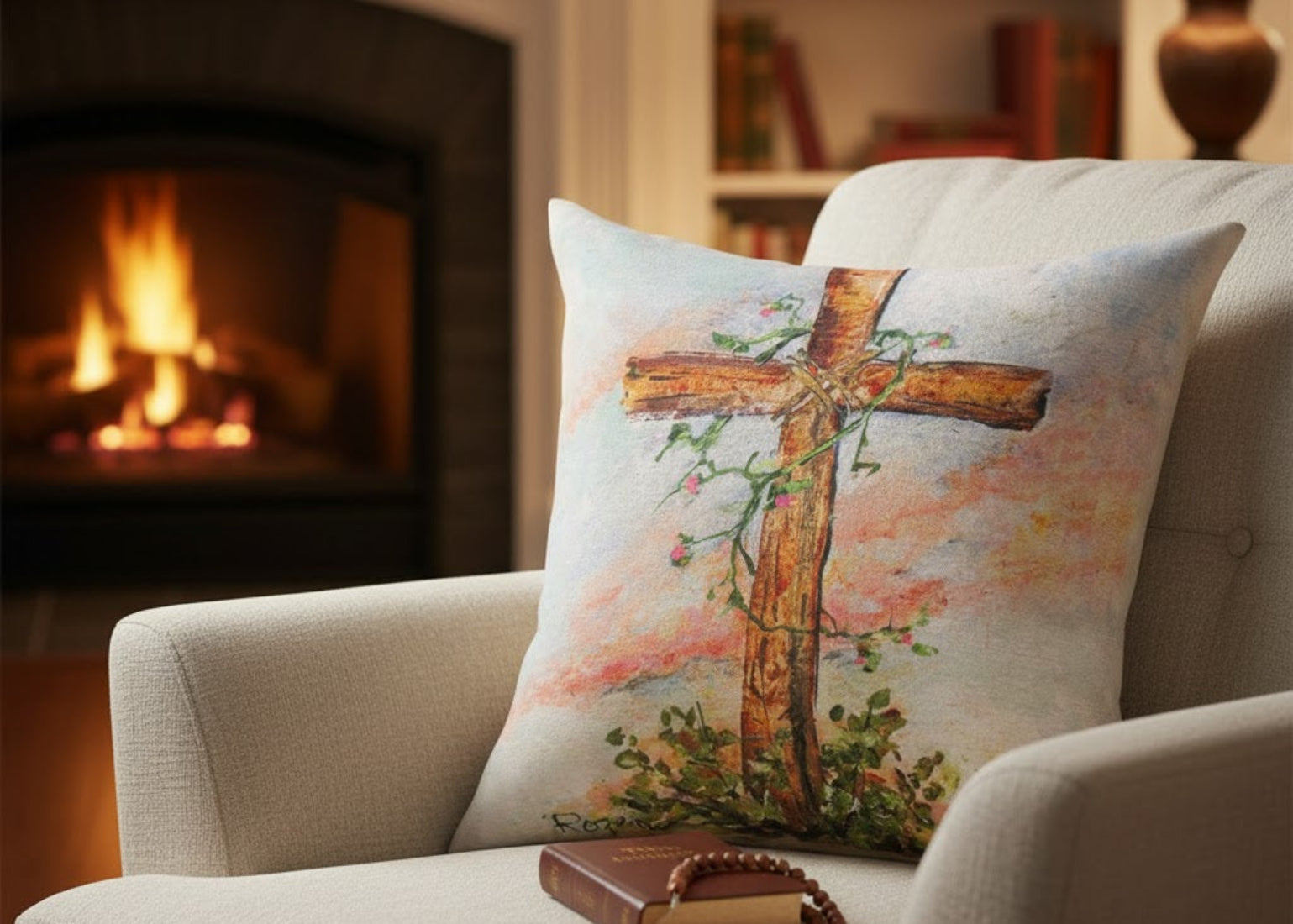 Decorative Cross 18 Inch Pillow – Durable Climaweave Fabric by Manual Woodworkers