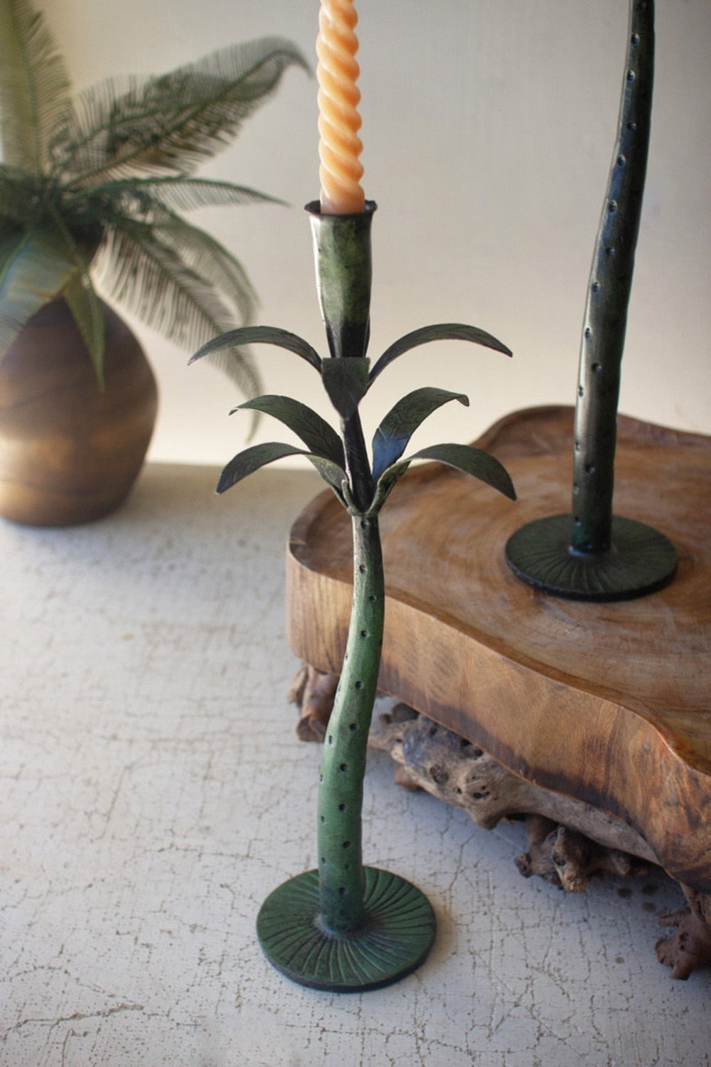 Decorative Iron Palms Taper Candle Holders – Set of 3 Patina by Kalalou