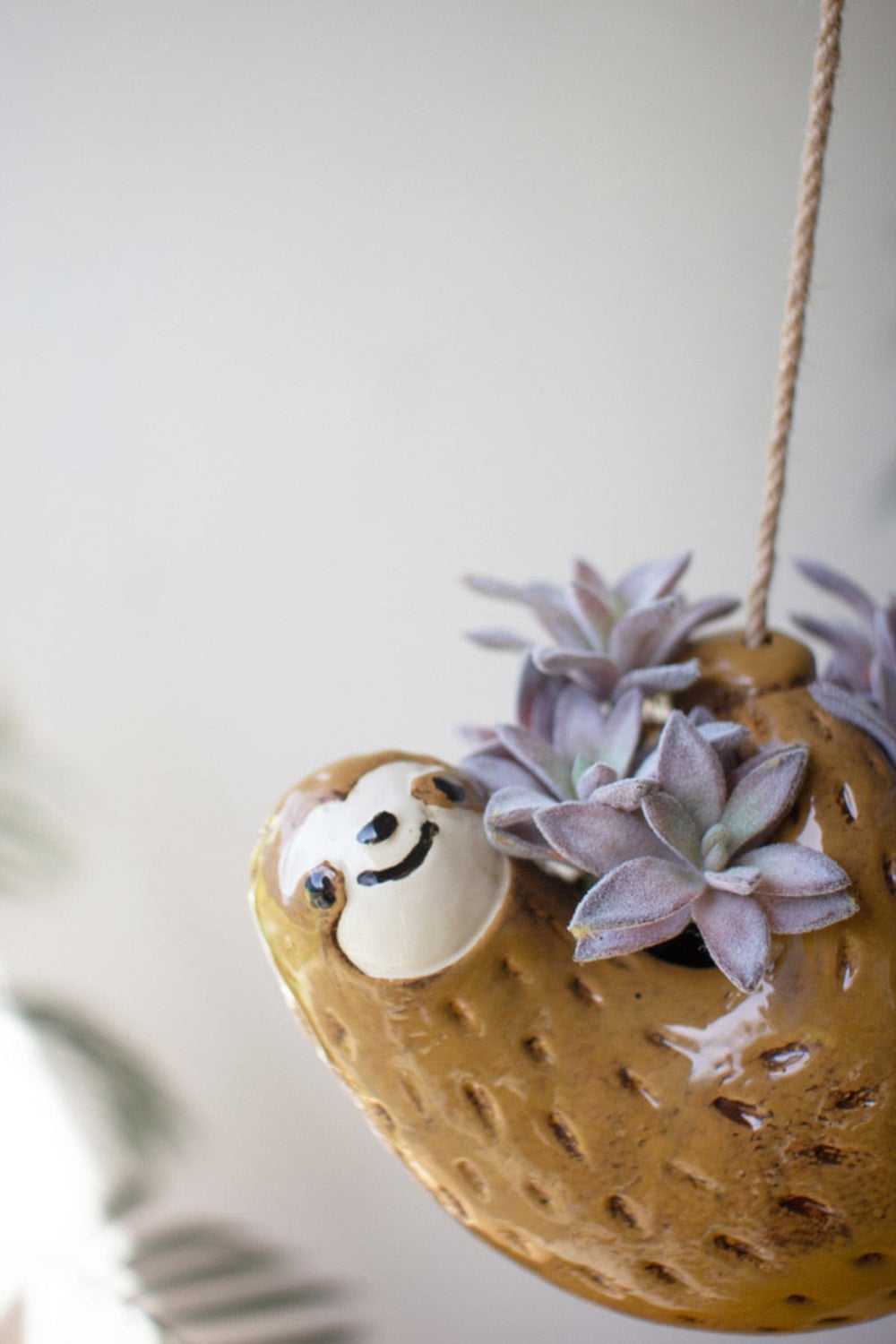 Decorative Sloth Hanging Planter – 6" Tall Ceramic Plant Pot Set of 2 by Kalalou