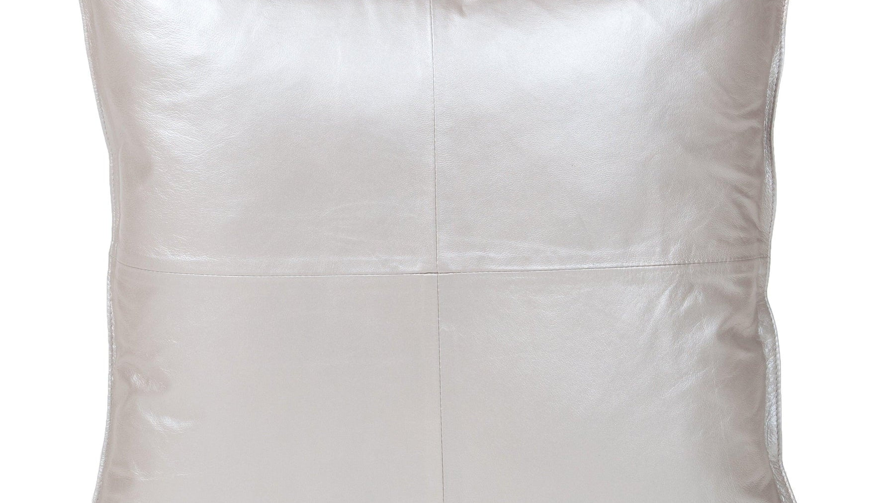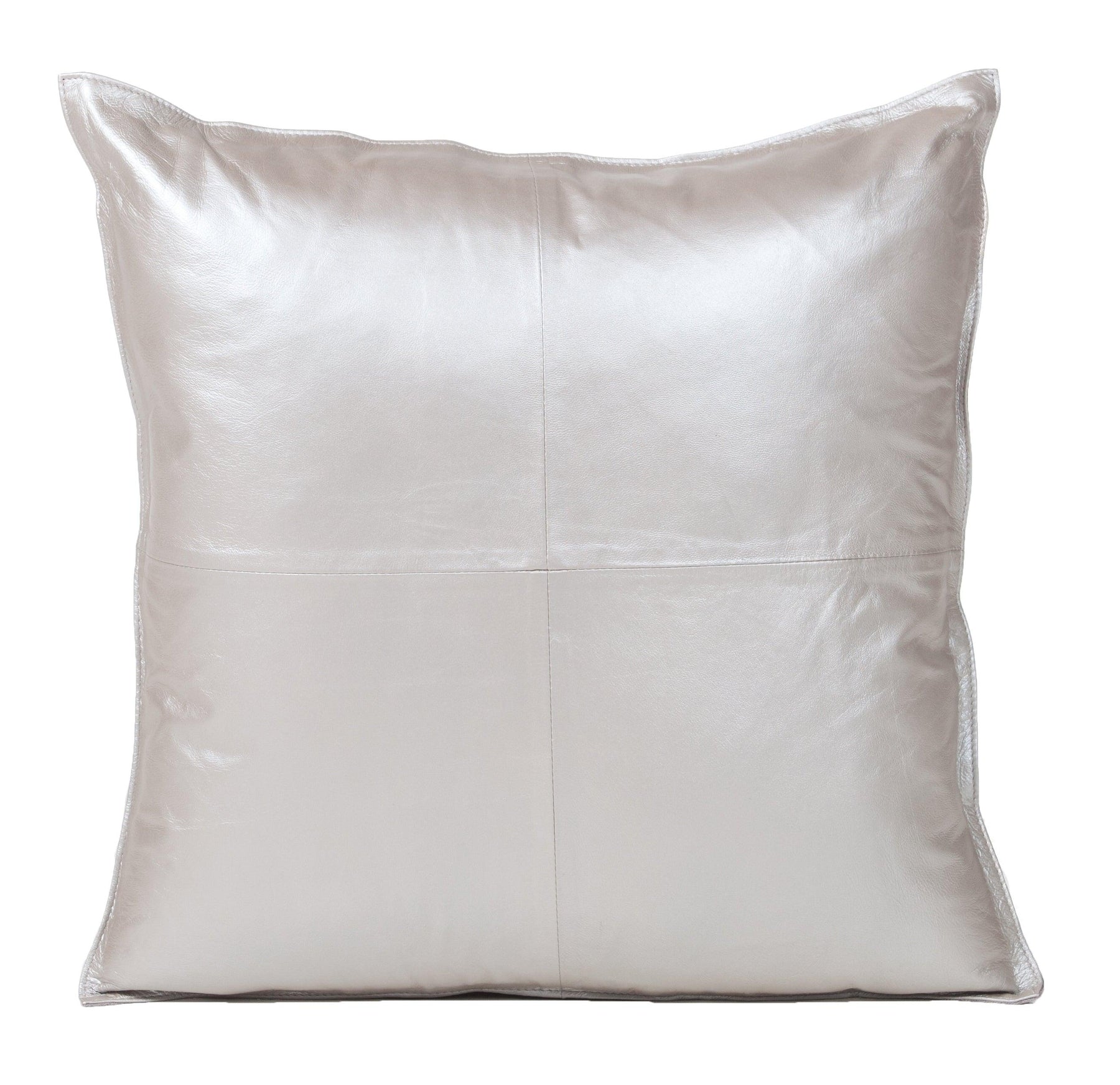 This indoor square cushion features a metallic silver leather front designed to add subtle shine and contemporary texture to seating areas. Crafted with 100% leather on the front and filled with feather and down, the cushion offers a soft yet supportive feel for everyday comfort. The square profile measures 20" W x 20" H x 4" D, making it suitable for sofas, accent chairs, or beds. Due to the natural characteristics of leather and the metallic finish process, variations in color and surface texture are expected, and each cushion may differ slightly from the images shown. Intended for indoor use only and requires dry clean care.