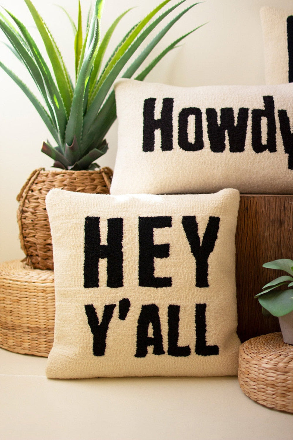 SKU - KAL-NANT1034KDecorative Square Pillow Hand-Hooked “Hey Y’all” Set of 2 – 18" Tall