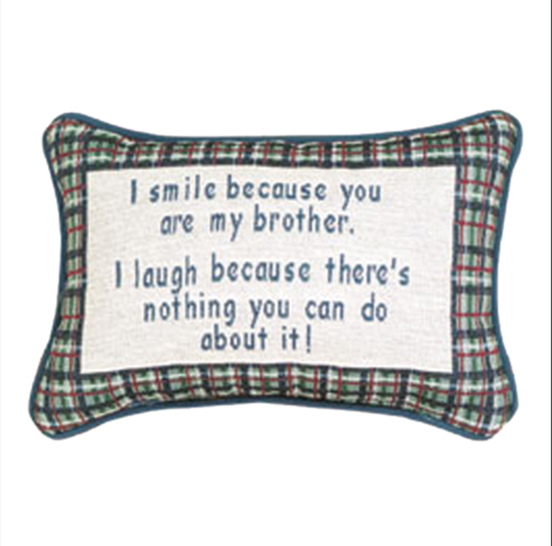 Decorative Word Pillow 12.5"x8.5"Accent - I Smile Because I Have a Brother by Manual Woodworkers