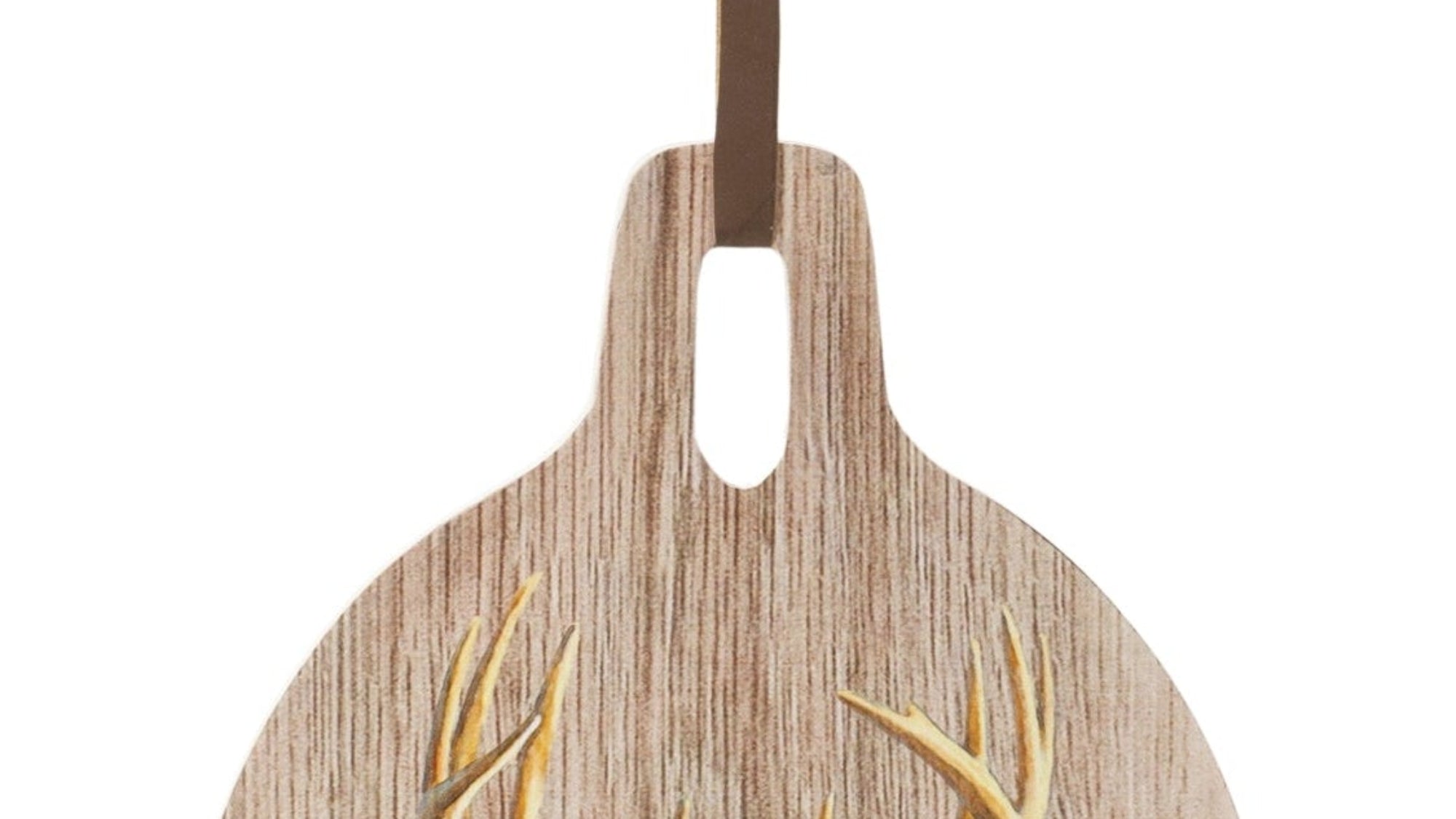 - Wooden cutting board decor featuring a rustic deer print