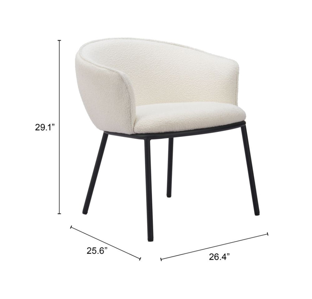 SKU - ZUO-110101Dining Chair 29.1"H Ivory – Textured Fabric Upholstered Seat with Black Steel Frame & Armrests