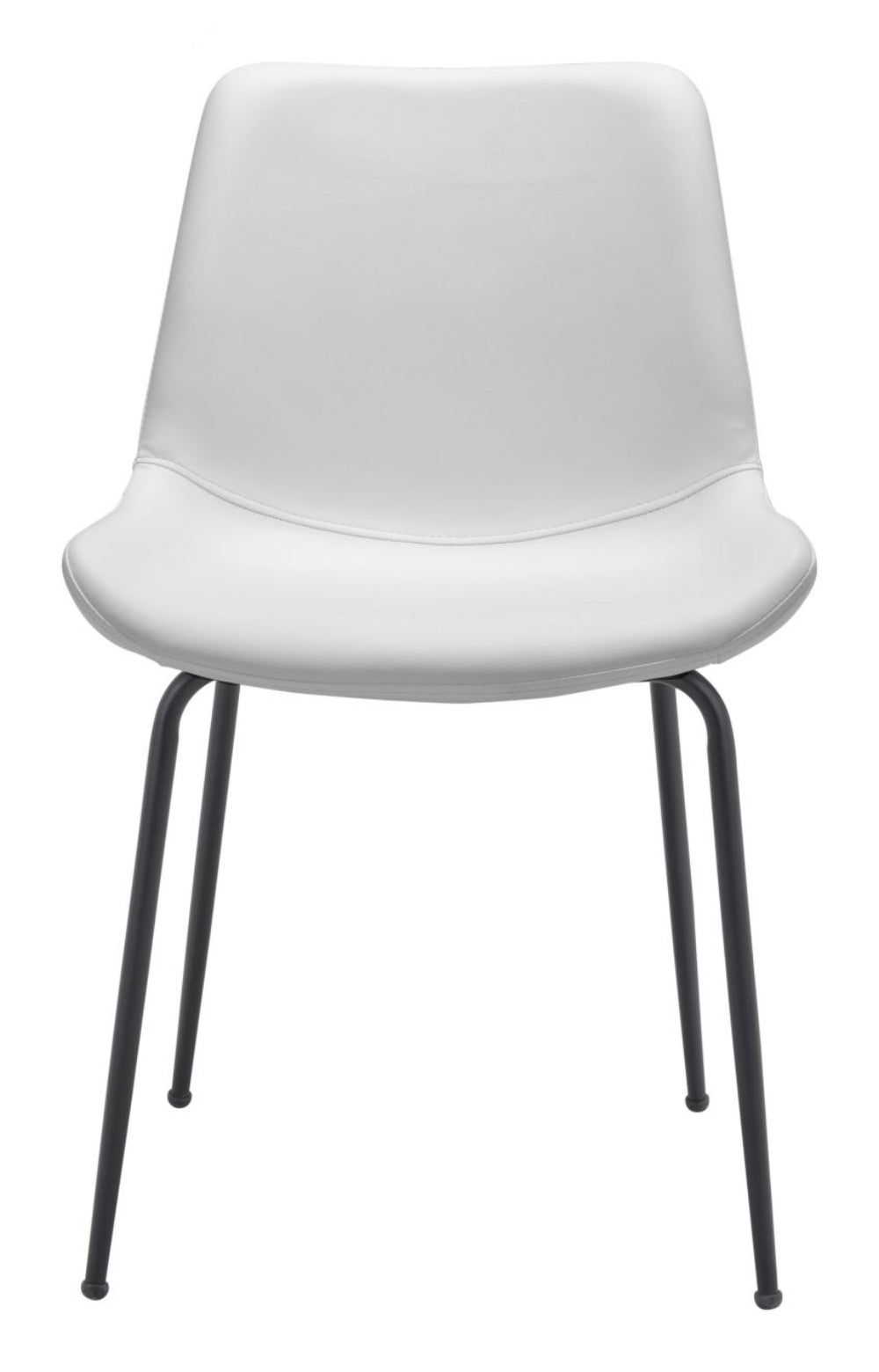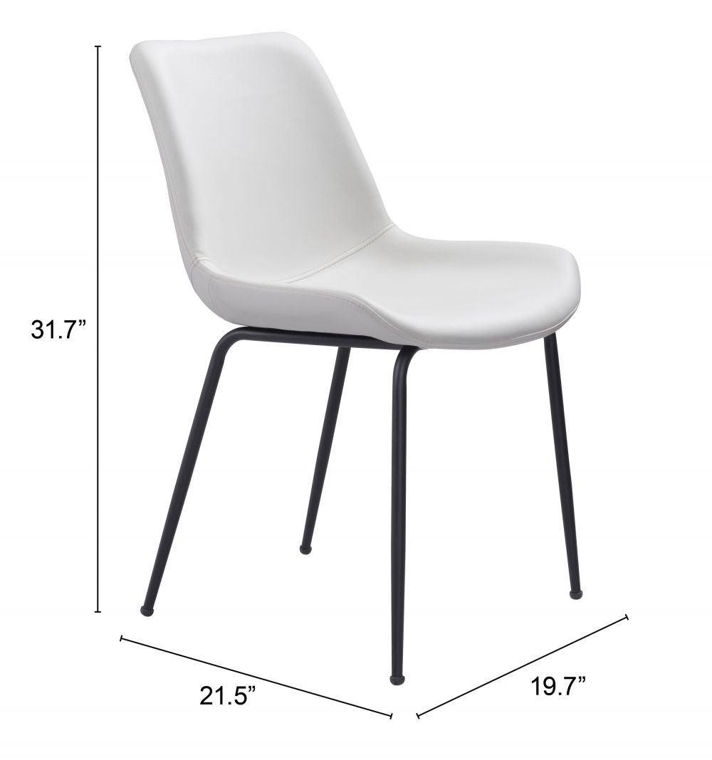 Dining Chair 31.7" H (Set of 2) – White, Faux Leather Upholstery & Black Steel Legs by Zuo Modern