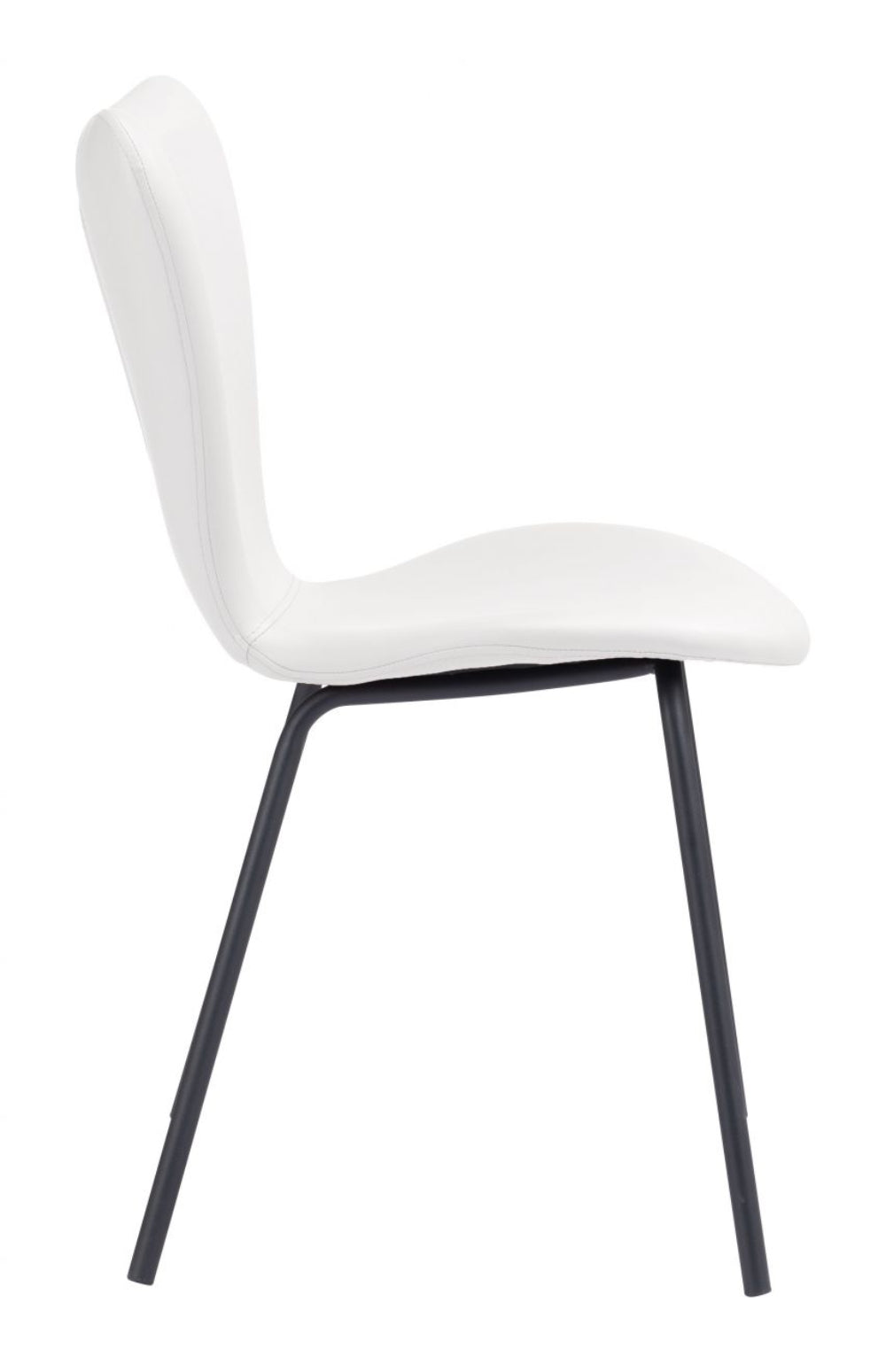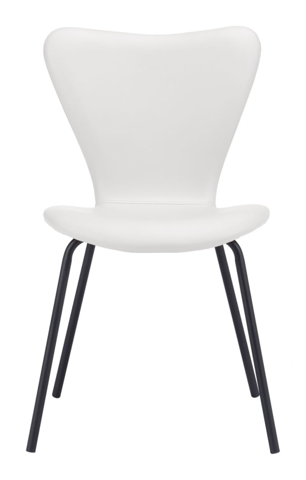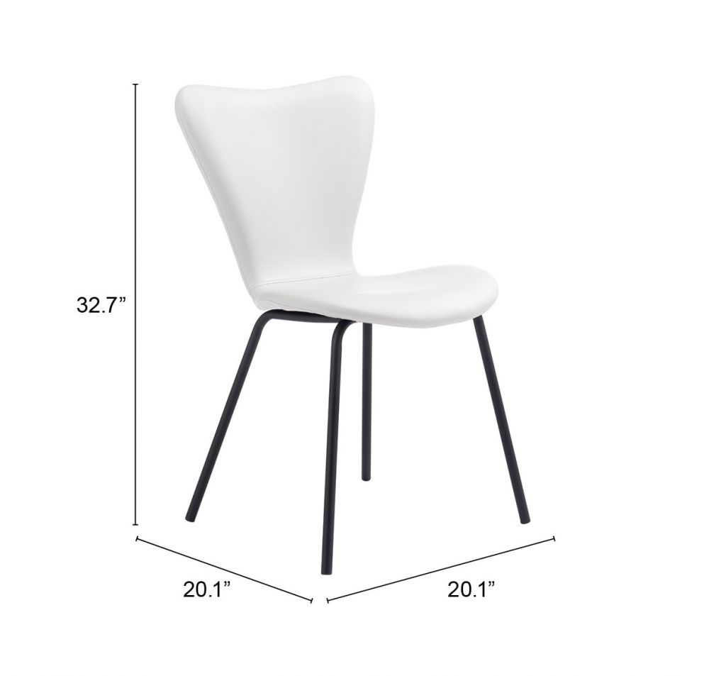 Dining Chair 32.7" H (Set of 2) – White, Faux Leather Upholstery & Black Powder-Coated Steel Frame by Zuo Modern