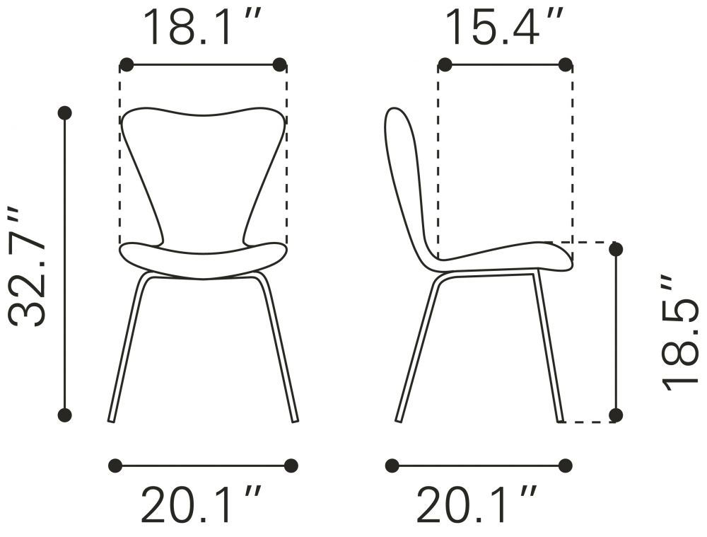 Elevate your dining experience with the Torlo Dining Chair Set of 2 by Zuo Modern. Crafted with a sleek electroplated steel frame and plush white faux leather upholstery, this chair set reimagines mid-century modern style through a contemporary, glamorous lens. The combination of soft, durable fabric and sturdy black powder-coated steel legs brings both comfort and sophistication to residential and hospitality interiors. Standing 32.7 inches high, the Torlo Chair complements dining rooms, kitchens, and cafés with timeless appeal. Its stackable design and easy assembly make it a stylish and practical addition to modern living.