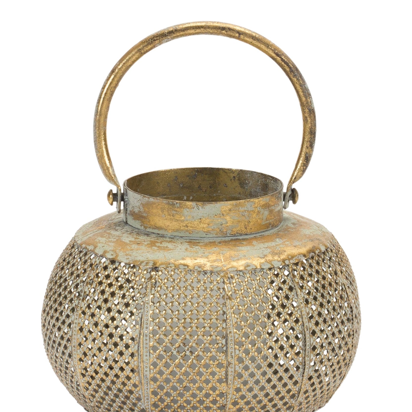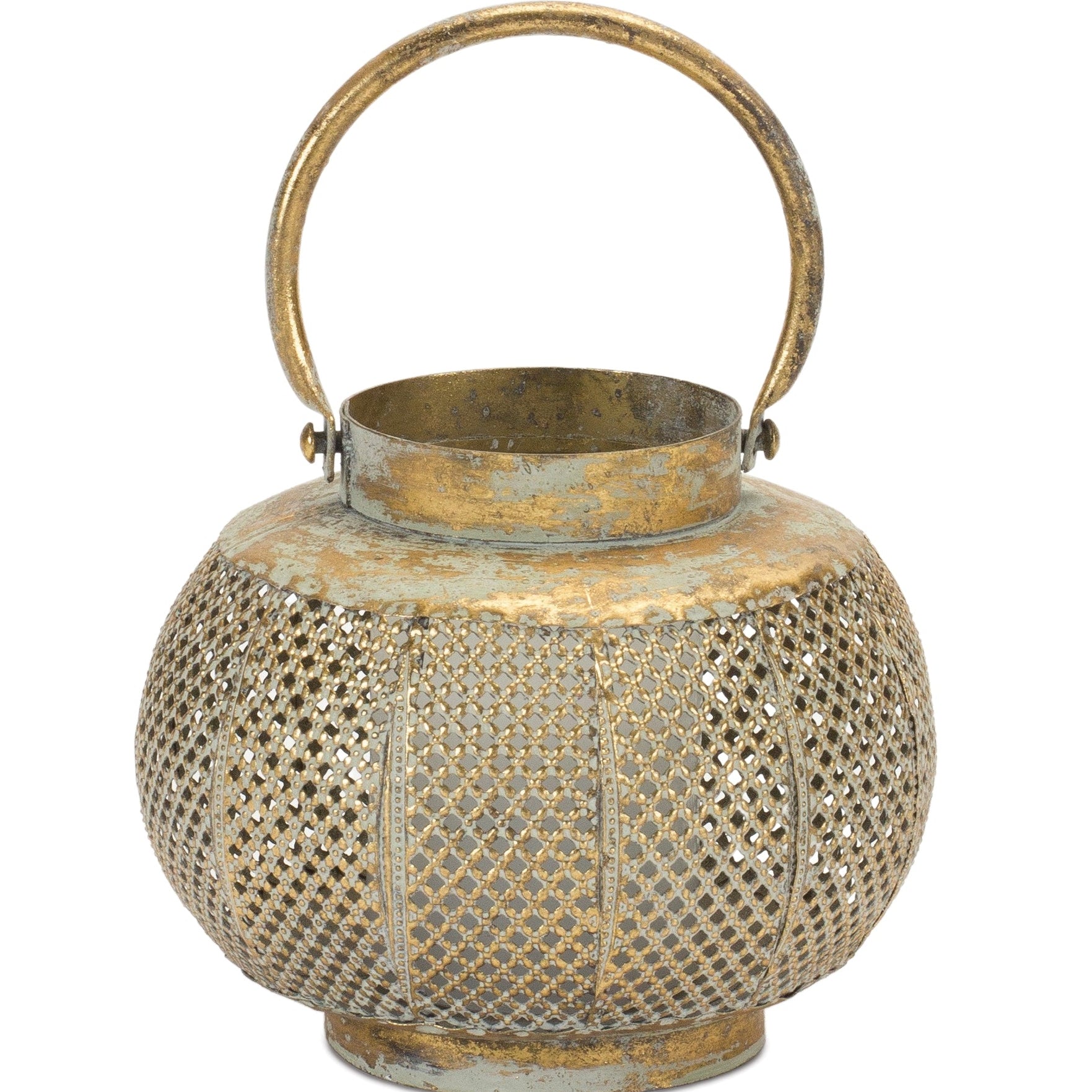 Distressed Punched Metal Lantern – 5.75"H Copper-Green Bohemian Candle Holder with Glass Insert by Melrose