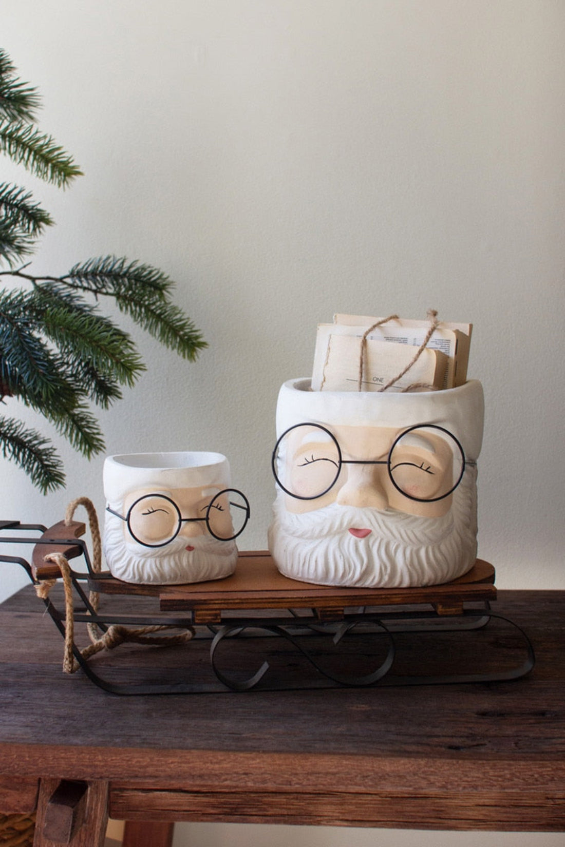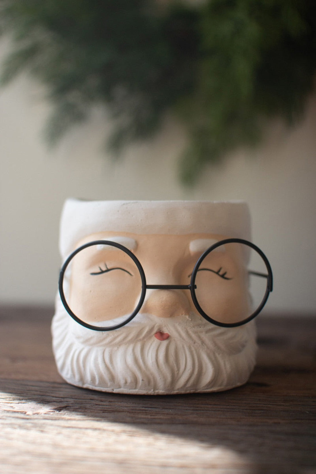 Christmas Santa Concrete Planters – 2 x Set of 2, 7.5" Holiday Decor by Kalalou