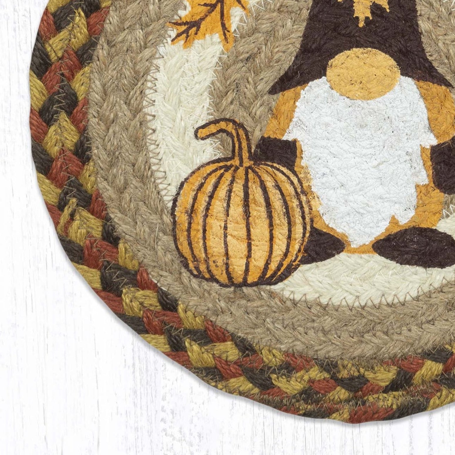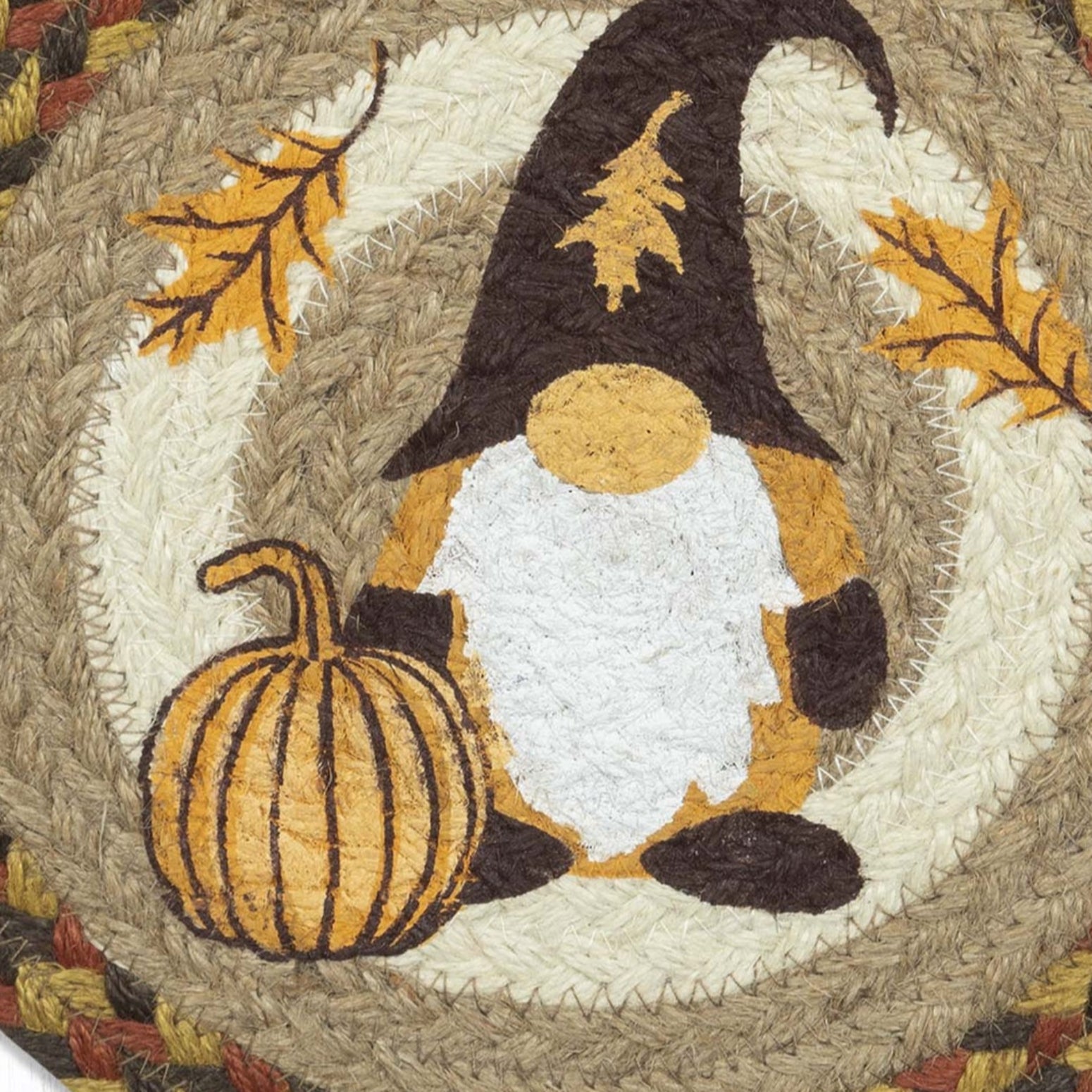 SKU - ER80-655FGEarth Rugs 10-Inch Round Jute Trivet with Fall Gnome Art by Harry W. Smith