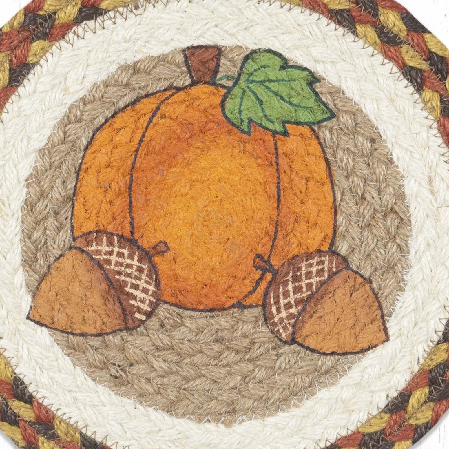 Earth Rugs 10 Inch Round Jute Trivet with Pumpkin Acorn Motifs